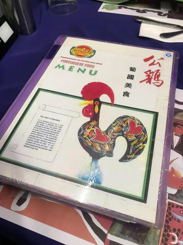 葡國人習俗:將公雞放在屋的橫樑上有鎮宅之用,別看手信舖內有多款顏色選擇,說什麼顏色有什麼功效,其實真正有用的是黑色的公雞,難怪公雞葡國餐廳放的是牠了,不過大概沒有橫樑,只好放在冷氣機上。人少少,我和老爸只點了兩道菜。炸馬介休球,外面炸的那層皮薄而脆,一流!內裡馬介休的口感像在吃薯蓉,然而自己覺得偏咸。第2道是豬手炒飯,飯炒得乾身,看上去沒有"油水",外觀不大吸引,就是連上去都沒有大驚喜,豬手肉粒切得太細粒,跟飯一樣炒得乾身,not good。自己就覺得上茶餐廳吃比這兒的還要好,價錢亦會便宜點。這間餐廳的佈置很有葡國氣息,值得進去一試,但大家最好還是別試豬手炒飯。查看更多