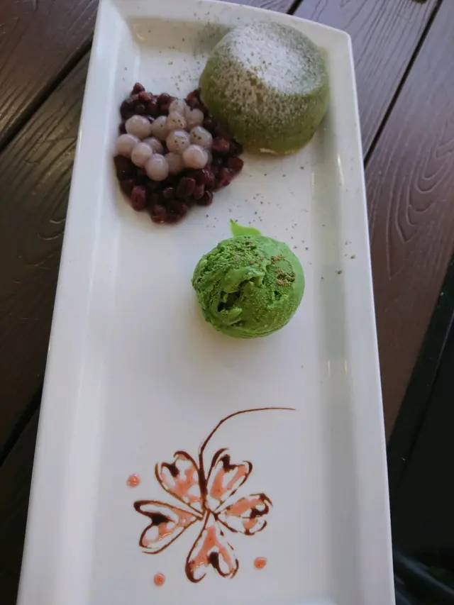 無意中發現他們有我至愛的抹茶心太軟,還伴以綠茶雪糕。這客甜品最值得稱讚是櫻花圖案,朱古力配以酸酸的醬,估計是桃或梅。紅豆丸子不算太甜,完全與期望一致。綠茶雪糕非常深色,奶味很重,但完全食不出綠茶味。好像是食了一客染色素的雪糕。