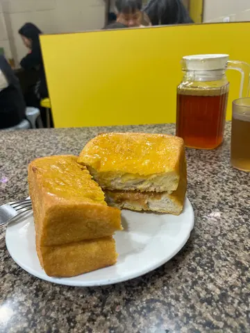 🧭新鸿发咖啡美食• 澳门 高士德🍴高士德贾伯乐提督街55A号地舖久违黎到澳门一游 都要去下澳门旧式茶餐厅 一入门口就感觉到地方小 但食既系风情同美食仲有旧式好多唔同种类既面包,下次有机会再试!居然有忌廉宾😍超厚西多士⭐️⭐️⭐️⭐️⭐️呢个岩哂行到攰攰地,去食个轻量既下午茶!第一次食咁厚,开头怕会好硬,点知食落好软熟。一啖接一啖 好快就食完有啲唔够喉添牛肉炒通心粉⭐️⭐️⭐️⭐️一上枱已经好香,简直色香味俱全。但食到最尾系有小小咸🤣但饮杯野就prefect!菠萝猪扒包⭐️⭐️⭐️呢个都有小小失望,因为较为普通。个包同猪扒未到热 但惊喜既佢有蛋同芝士系中间包住,食落都无咁口干 有啲特别既。但如果热啲同猪扒多汁啲会好啲。海鲜炒饭⭐️⭐️⭐️⭐️呢个反而普通得黎又有啲记忆点。开头见佢无乜色 以为好淡味。但食落好够味,而且feel到系有镬气的。所以好香而且好足料,差唔多每啖都会咬到有海鲜系入面。📌温馨提示:佢都比较早close, 无做晚市的,所以推荐作为下午茶口痕去食小小 几多人share🥰#macau #foodstagram #foodie #cafe #茶餐厅 #澳门 #澳门美食 #怀旧 #下午茶 #经典 #美食推荐#西多士 #炒通粉 #猪扒包