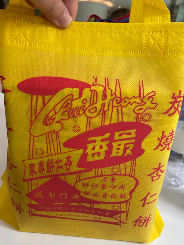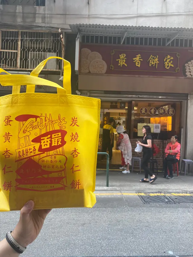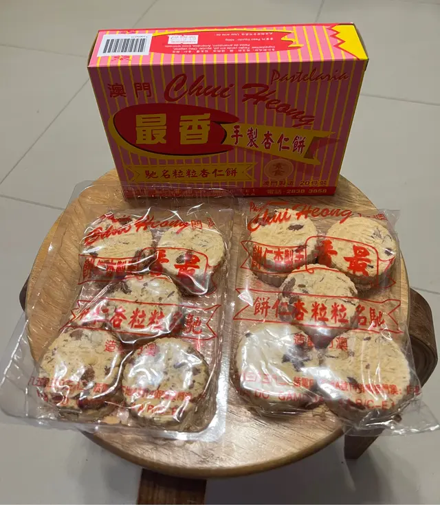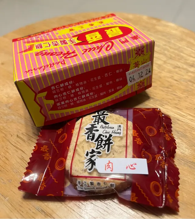 到澳門旅遊,不少人都會買杏仁餅做手信,而我覺得最好吃的就是最香餅家的杏仁餅,我已多次回購。這次買了一盒,馳名粒粒杏仁餅( 20個鐘)和一盒最香三寶。為什麼我喜歡最香的粒粒杏仁餅?因為這家的杏仁餅有炭燒的香味,杏仁味天然,不會像某些店的杏仁餅,吃到的只是杏仁精油的味道,而且這店的杏仁餅質感鬆脆,餅裏面的杏仁粒很多,口感很好。這次還買了最香三寶,盒子內的杏仁餅共有三個,除了粒粒杏仁餅,還有肉心杏仁餅和蛋黃肉心杏仁餅。不過,在吃過之後,覺得肉心杏仁餅和蛋黃肉心杏仁餅不及粒粒杏仁餅好吃。因為肉心杏仁餅裏面的肉是肥豬肉,我不愛吃肥豬肉,覺得口感比較油膩,至於蛋黃肉心杏仁餅,雖然多了蛋黃,但還是覺得比較油膩。不過,這其實和個人喜好有關,喜歡食肉心的,還是可以一試。這店逢星期三休息,想去買杏仁餅的,不要在星期三前往。…查看更多