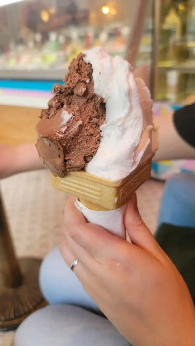 雙球 $45 (🥭黑芒果+🍌香蕉榛子)見黑芒果黑鼆鼆咁,同平時啲芒果味唔太一樣好似幾特別咁,所以就試吓😂 食落,基本上都係普通芒果味,味道偏甜,個人認為如果多少少芒果酸味嘅話,食落層次感會更加強😬 我反而比較鍾意香蕉榛子味,食落香蕉味好濃烈,加埋榛子味,兩隻味道幾夾!呢間味道唔太差,只係略嫌啲Gelato甜味蓋過咗其他味道🫣 不過以呢個價錢可以食到雙球Gelato,仲要係米芝蓮推薦嘅話,都明白點解咁多人慕名而來…查看更多