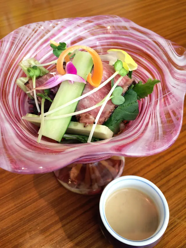 和牛宴 饞餵人等级42015-07-13236 浏览 关注 今天來到澳門,當然要玩番一天吧。玩到下午,當然要休息一下,吃個午餐吧。來到壹號廣場的江戶日本料理,便走進了入去。餐廳從門面看來,就以一身木系裝飾,入到內裡,就感覺到是一間高級餐廳,而且環境優雅,裡內有著一個壽司吧枱,酒櫃和海鮮的位置,亦有些小擺設。進入廂房,亦感到非常光猛,座位也坐得舒適。當坐下來後,就不如時不延遲,立即開餐。牛蒡煮和牛碎。牛蒡為植物,源於中國。牛蒡呈條狀,牛碎亦成塊狀,入口的時候,牛碎鬆化味帶甜味,牛蒡亦是甘香鬆脆。柚子胡椒汁火炙和牛是一道冷盤,和牛經過火炙,再加上柚子胡椒汁來把和牛提味,令和牛的味道突出,入口時和牛幼嫰和鮮味,但醬汁中卻有點辛辣。烘焙胡麻醋半熟和牛沙律。和牛煎得半熟,中間位置仍有紅色部份,當中以烘焙過的胡麻醋將和牛的味道帶出,因此吃起來有種濃郁的和牛味道,而且亦是幼嫰非常。和牛貴乃花相樸壽司。以橫崗相樸手的名字而命名的。當中除了有和牛卷著飯糰外,上層亦加上了由俄羅斯來的海膽,故此吃起來故然有種層次感覺,亦能吃到海膽中的海水味道,而且和牛的油脂也相當的高。吉列半生和牛。吉列雞扒和吉列豬扒就吃得多,口列和牛可有吃過嗎?這實是少見。和牛蘸上炸粉,並炸至半熟,當中雖為略為過了火位,外層有點燶,但是和牛內裡仍有生的部份,故吃起來仍怠幼嫰感覺。和牛露筍炒飯。在日式餐廳裡面,甚少吃到炒飯的。和牛與露昏及米飯一起炒起來,都幾特別的,除了和禾和露昏外,還有蒽和蛋在內,吃起來亦怠到有種甘香而有點鑊氣的感覺。海草湯味道都幾濃郁的,與喝味噌湯差不多吧。抺茶焦糖布丁。在下喜歡用抺茶做的甜點,無論是雪糕或布丁。這一杯布丁有著香濃的抺茶,焦糖略為硬了一點點,但裡內的布丁卻又幼滑而富蛋香,不錯吧。今餐吃的全是以和牛作主題,故每道菜式也具特別。在用餐時,服務員也很殷勤的服務呢!…查看更多+ 18以上食记乃用户个人意见 , 并不代表OpenRice之观点。5分享和牛宴 江戶日本料理 https://s.openrice.com/QrLT18QyIW0检举 张贴 评分4味道4环境4服务4卫生4抵食用餐途径堂食人均消费$830 (午餐)用餐优惠試食活動