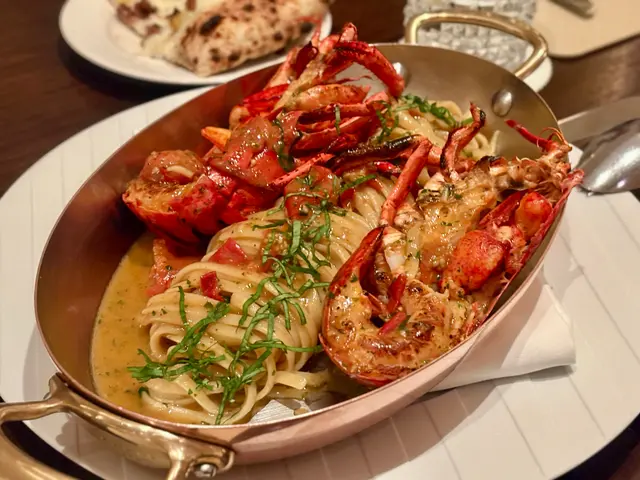 #西西里生红虾薄片配面包沙律及三文鱼籽 生红虾薄片透如蝉翼,入口甘甜软糯,没有过多的调味,保留了生虾原本的味道。将虾片、面包沙拉与鱼籽一同送入口,感受脆、糯、爆浆的三重奏。#水牛芝士、烤薯仔及意大利香肠薄饼 使用味道清淡、质地柔软湿润的意大利乳清干酪Ricotta 和mozzarella芝士拉出金黄瀑布,与绵密烤薯仔交织出浓郁满足感。薄脆饼底承载著烟熏风味,每一口都是碳水与脂肪的完美狂欢。原只龙虾上盘的#波士顿龙虾扁意粉 气势十足,虾肉饱满弹牙!龙虾膏熬成的酱汁如丝绸般紧密包裹每根扁意粉,鲜味在口中炸开。面条口感完美承接浓郁酱汁,每一叉都是大西洋与地中海的奢华邂逅。#西班牙猪扒配茄子伴番茄汁及肉汁 厚切猪扒煎得粉嫩多汁,炖煮到软糯的茄子吸饱番茄的酸甜与肉汁的丰腴,朴实却让人回味无穷。作为每次来必点的特式甜品#驰名Neapolitan 脆叶酿玉桂忌廉配樱桃 薄脆饼皮层层剥落,包裹著温热肉桂奶酱,轻咬即碎。酒渍樱桃的酸甜划破浓郁,甜而不腻的幸福感和满足感瞬间爆表。 颠覆想像的#黑松露雪糕 看似矛盾的组合,却是今季最惊艳的邂逅,Gelato的绵密质地温柔包裹黑松露独特香气,初入口是奶香轻盈,随后松露的森林气息缓缓绽放,咸甜交织竟毫不违和。…查看更多