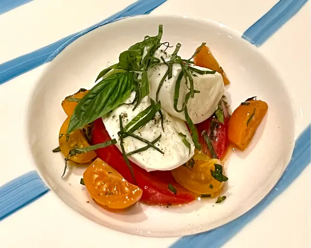 西西里生紅蝦薄片配麵包沙律及三文魚籽
