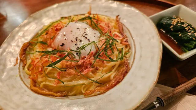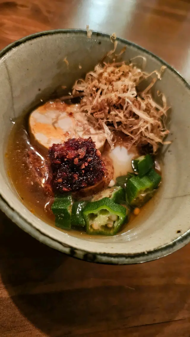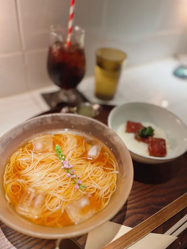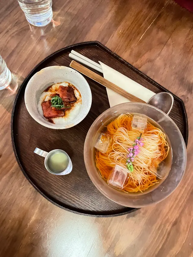 總共黎食左兩次,一次夏天食,一次冬天食,餐廳都會按季節轉換餐廳,好細心♥️餐廳唔大,想確保有位,最好ig訂位✅環境:餐廳裝修非常靚,係和式用上好多木既裝修,水吧咖啡吧位置亦相當有格調。餐廳入面光線較暗,都有好處,感覺放鬆,同另人會細聲啲講嘢😆食物:夏天食那次有梅子冷麵,酸酸甜甜,加埋冰粒,好岩消暑。冬天那次則有暖笠笠拉麵,非常好味☺️不得不提佢既甜品,一定一定要套餐叫埋,無論焦糖布甸、抹茶焙茶pancake都同日本食既一樣好味🇯🇵不可錯過!飲品有英記既荔枝紅茶,唔會死甜👍🏻服務:店員都好細心,服務好好,但可能餐廳真係人手不足,兩次食都等好耐先上菜,尤其甜品…所以要預充足時間先好食🥲…查看更多