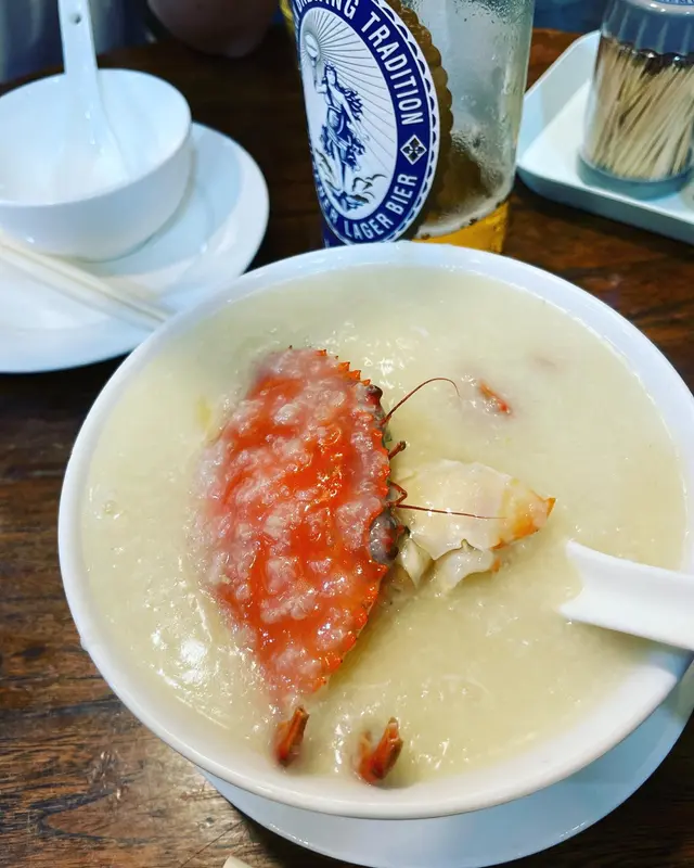 每次來澳門經過都看到很多人排隊( ᵒ̴̶̷̤◦ᵒ̴̶̷̤ )/加上澳門吃的不算多 就來試試囉ꉂꉂ(¯ᗜ¯艸)𐤔超幸運只排了20分鐘左右店面像普通茶餐廳 坐得比較擠一點_(っ’o‘c)_🔸水蟹粥🦀 ($170/碗)一碗有一隻蟹🦀蟹肉不算多但是很甜😋蟹膏應該都拌進粥裡了所以本體上的蟹膏不多:3粥是鮮甜的味道 質感很綿山 很好吃( ᵒ̴̶̷̤◦ᵒ̴̶̷̤ )♡三個人差不多每人一碗就吃完了ദി ᷇ᵕ ᷆ )值得再吃一次的那種好吃:3🔸椒鹽粟米🌽 ($88)本來覺得只有玉米有點小貴-0-‘但是看到很多人點所以也叫了一份ʕ•̀⤙•́ ʔ/上桌時熱辣辣 玉米算是飽滿多汁( ’ᢦ‘ )/重點是那個調味!非常惹味香口(oˆ罒ˆo)/非常值得!!吃完玉米還不停拿調味料來拌飯吃🤤🔸蝦子雲吞撈麵 ($74)看外面宣傳寫的是手打竹升麵:0就是用竹子捍的麵 好像很厲害的樣子@_@有4顆雲吞,雲吞還算可以,但沒什麼特別~麵條上灑滿蝦子 麵的口感比較爽 有一點鹹但是蠻香口的:0)配的湯普普通通~ 整體中等( •́ฅ•̀ )🔸乾免治牛肉飯 ($68?)牆上的圖片超不吸引(¯―¯٥)但是男友一直吵着要叫 想不到!!超好吃 有爆炒的洋蔥跟馬鈴薯🥔😛😋馬鈴薯超脆整個味道很好 不過牛肉粒很少😂😂但是非常值得一試^0^ 是會再吃一次的好吃!🔸乳鴿 ($58)餐牌上沒有的 看到隔壁在吃所以跟着點了( 'ᢦ' )價錢在這家店算便宜~乳鴿的肉蠻多的XD 但是我覺得皮不夠脆(oˆ罒ˆo)..不過不失吧~🔸即榨甘蔗汁 ($25)這個沒有拍照,因為就是一般的支裝飲料~一支涼茶那樣大 因為店裡的可樂也要$20:0)所以想說不如叫這個🤣店家說是無添加~喝起來的確如此( ᵒ̴̶̷̤◦ᵒ̴̶̷̤ )不甜!是清香的回甘~有一點解膩的感覺 來吃飯推薦來一支喔(꜆ ˙ᗜ˙ )꜆查看更多