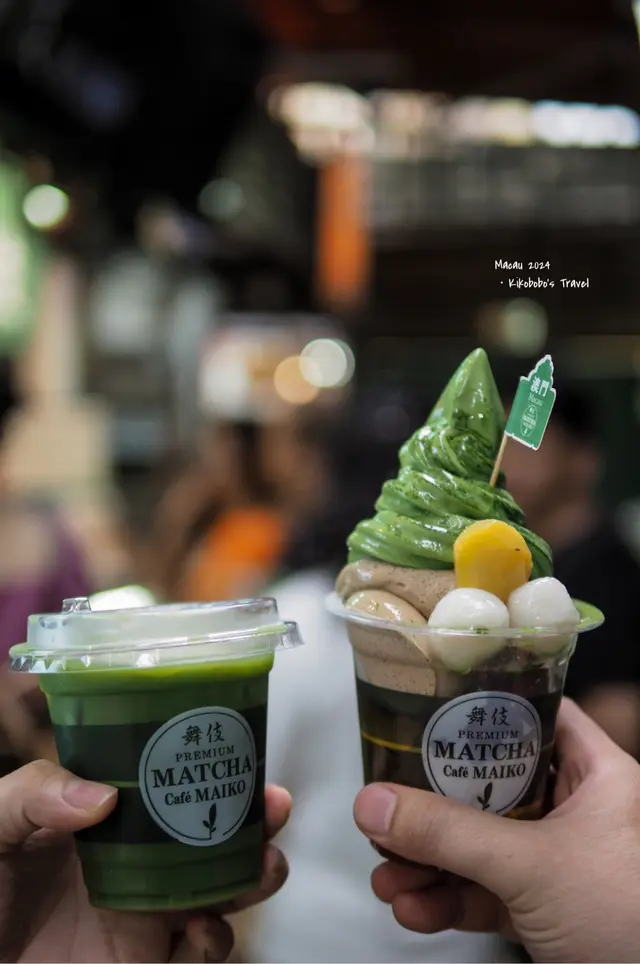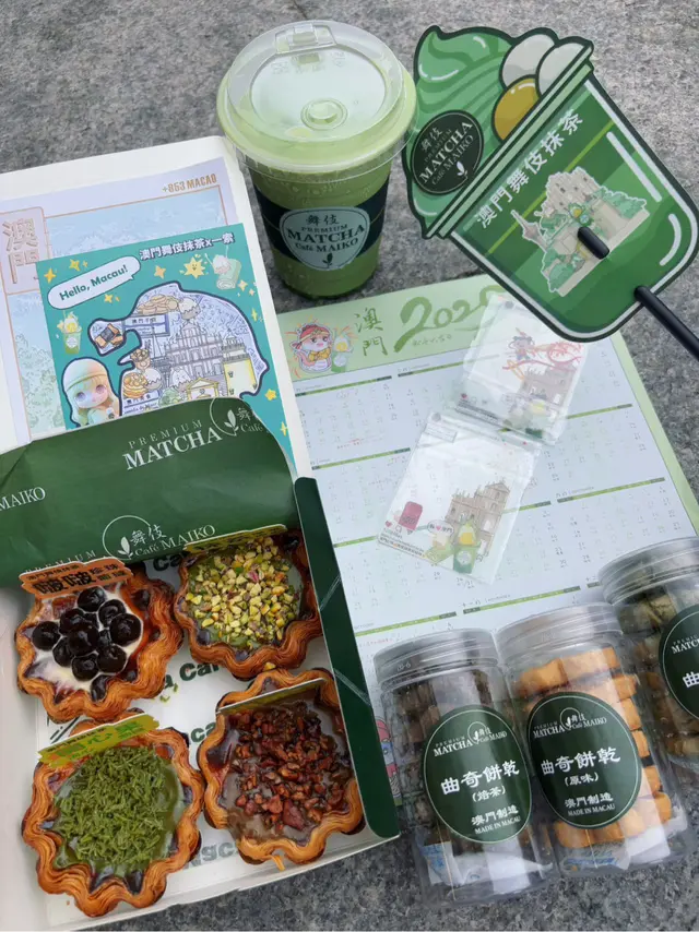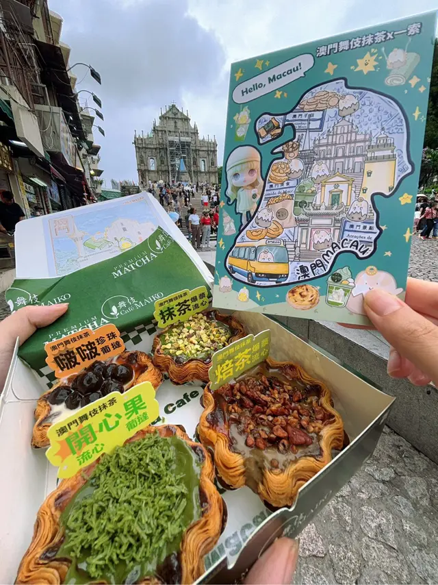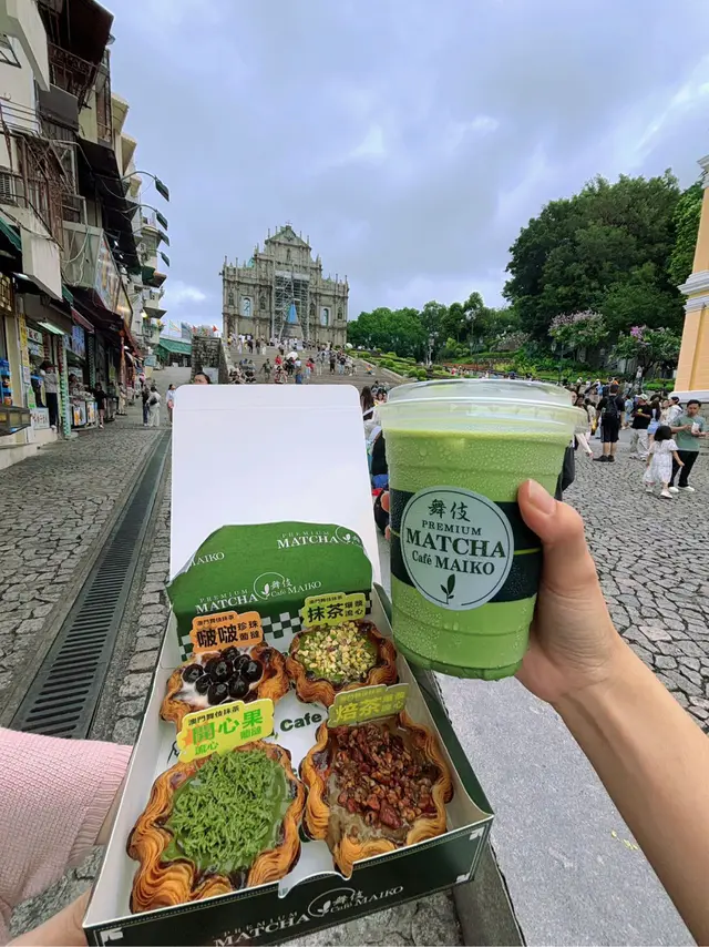 大三巴一帶必食人氣抹茶甜品🍵大三巴行到攰,唔係淨係得豬肉乾食嫁!仲有抹茶飲品、雪糕、葡撻等住你!🥧流心葡撻($18/一個,$28/兩個,$53/四個)有多款味道選擇,我地揀左開心果流心、原味澳門葡撻、抹茶拿鐵同啵啵珍珠葡撻,全部千層皮非常鬆脆,趁熱食一流!🧋抹茶拿鐵(中$39,大$42)抹茶味非常濃,聽講原料係來自160年歷史既宇治田園播磨園。不過稍甜,建議凍飲比較適合!🔆店舖亦會定期為不同明星應援,去既時候係乒乓波運動員孫穎莎,鍾意運動既一定唔可以錯過呀🏓…查看更多