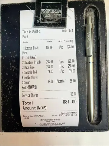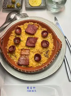 之前澳门系试过呢间餐厅,葡式菜食过返寻味,今次试吓其他菜式炙烤八爪鱼同黑毛猪柳串烧得啱啱好,八爪鱼咬落够弹牙。黑毛猪柳肉质软嫩,简单调味,已经带出肉香,串埋一齐,加埋多士层次丰富葡式烤乳猪系亮点,皮脆到咔嚓声,皮下脂肪层好有油香。肉质保持到湿润,唔会干争争,蘸少少附上烧汁更有风味最后个葡式鸭饭都唔错,饭粒吸晒鸭肉同葡式香肠嘅油香,鸭肉撕成丝状,同饭一齐焗到香喷喷整体来讲,呢几款菜都做得正宗,过嚟澳门玩值得一试