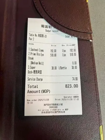 最近去咗葡富轩,真系有种惊喜嘅体验!餐厅嘅装潢雅致,氛围好适合朋友聚餐或者约会。🤍顶级肉眼扒配香烤大蒜及手工地瓜脆条肉眼扒外焦内嫩,咬落去肉质鲜美,配搭啲香烤大蒜,更加增添咗浓郁嘅香气。手工地瓜脆条亦令人印象深刻,外脆内软,口感层次十足,十分爽口!🤍白酒煮蚬呢道菜真系唔可错过,蚬肉肥美,啖啖饱满,配上白酒同蒜蓉煮,令人感受到海鲜嘅鲜甜,非常开胃。✨✨✨✨真系有种惊喜嘅体验!餐厅嘅装潢雅致,氛围好适合朋友聚餐或者约会。…Read More