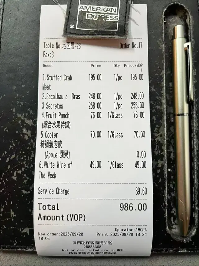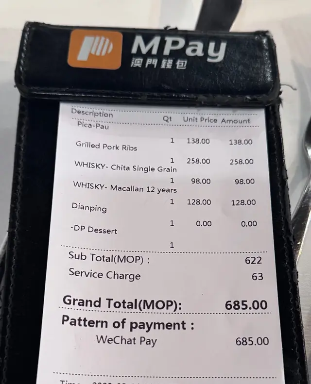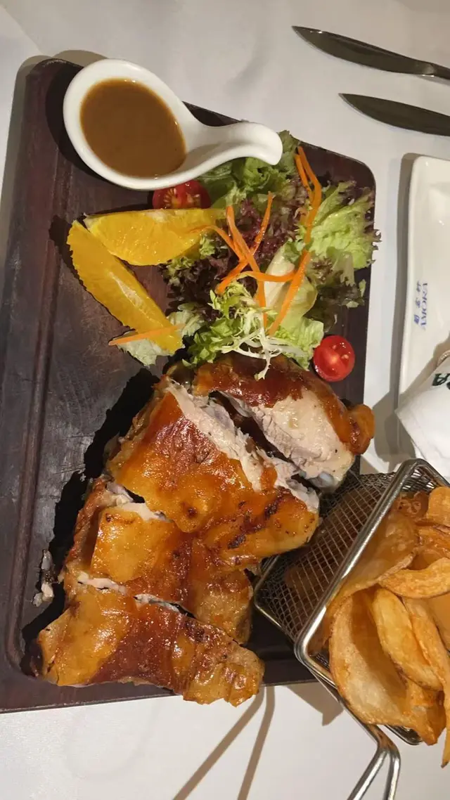之前澳門係試過呢間餐廳,葡式菜食過返尋味,今次試吓其他菜式炙烤八爪魚同黑毛豬柳串燒得啱啱好,八爪魚咬落夠彈牙。黑毛豬柳肉質軟嫩,簡單調味,已經帶出肉香,串埋一齊,加埋多士層次豐富葡式烤乳豬係亮點,皮脆到咔嚓聲,皮下脂肪層好有油香。肉質保持到濕潤,唔會乾爭爭,蘸少少附上燒汁更有風味最後個葡式鴨飯都唔錯,飯粒吸晒鴨肉同葡式香腸嘅油香,鴨肉撕成絲狀,同飯一齊焗到香噴噴整體來講,呢幾款菜都做得正宗,過嚟澳門玩值得一試…查看更多