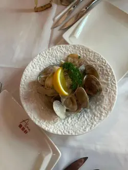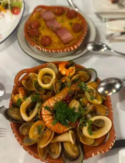 先点了心心念念的葡式烤沙丁鱼🐟,端上桌时还冒着热气,鱼皮烤得金黄金黄的,轻轻一夹就“咔嚓”响,咬开后鱼肉居然嫩到能爆出汁,淡淡的海盐混着香草香,完全没有海鱼的腥味,配着店里的冰镇博克啤酒🍻,一口下去清爽又解腻,瞬间把胃口全打开了!接着上的白酒炒蚬更是绝绝子🥢,锅里的汤汁还在微微冒泡,白酒的清冽混着蒜香和蚬肉的鲜甜直往鼻子里钻。夹起一颗蚬肉,个头不算特别大但超饱满,嚼在嘴里QQ弹弹的,满是大海的鲜味,连汤汁都想蘸着面包吃干净🍞,一点都舍不得浪费!最后忍不住加了份葡式海鲜汤饭,分量超实在,勺子一舀就能挖到虾仁、鱿鱼和贝类🦑,米饭吸足了浓稠的海鲜高汤,软糯却不粘牙,每一粒都裹着鲜美的味道,一口饭一口海鲜,暖乎乎地吃进肚子里,整个人都变得超舒服~