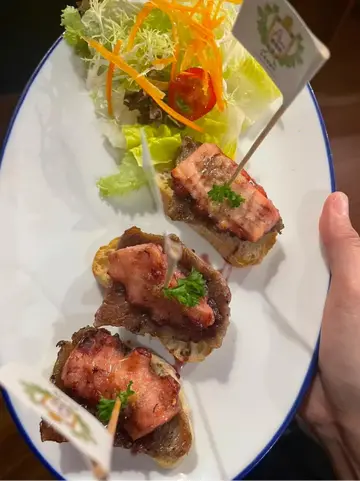 虽然已经第二次食葡景轩但今次仍然好有惊喜😍相信下次都会继续黎综合小食拼盘份量多 三个人都够食😂😂咖喱角同香辣炸丸特别推荐😋咖喱角外酥内软 馅料丰富唔会油腻香辣炸丸炸得好脆口 配埋酱汁更添风味👅肉眼扒配香烤大蒜及手工地瓜脆条牛扒烤得外焦内嫩 肉汁锁得恰到好处 肉眼睇都见到少少粉红色 放到入口非常juicy🤤地瓜条洒满葡式香料👍🏻👍🏻八爪鱼及黑毛猪柳串八爪鱼外脆内软 内里Q弹有嚼劲😝黑毛猪油香爆棚 搭配既串烧汁带点微辣🌶️