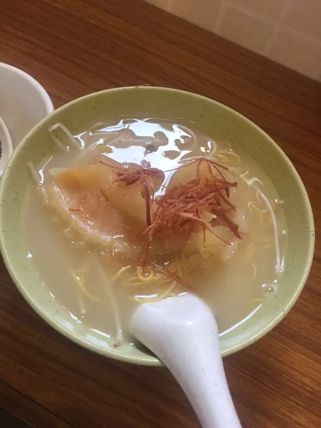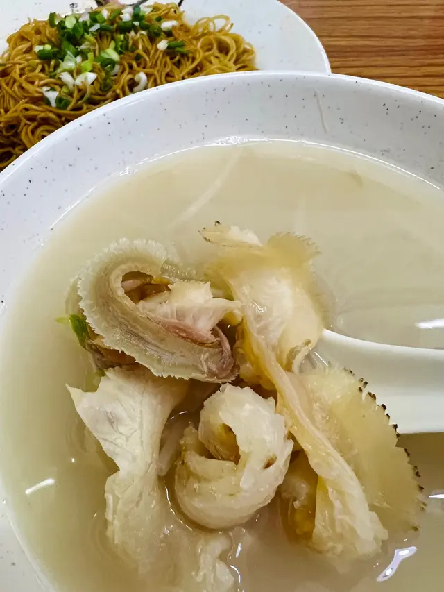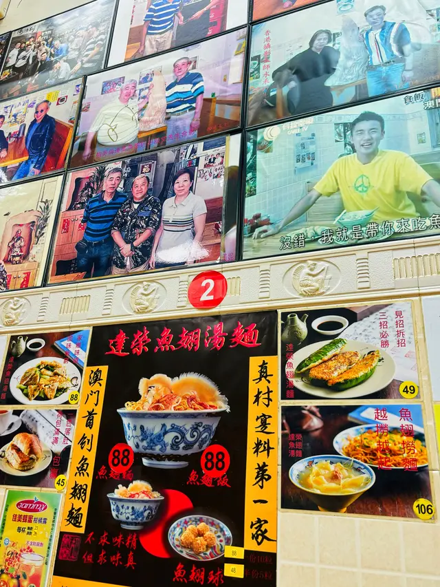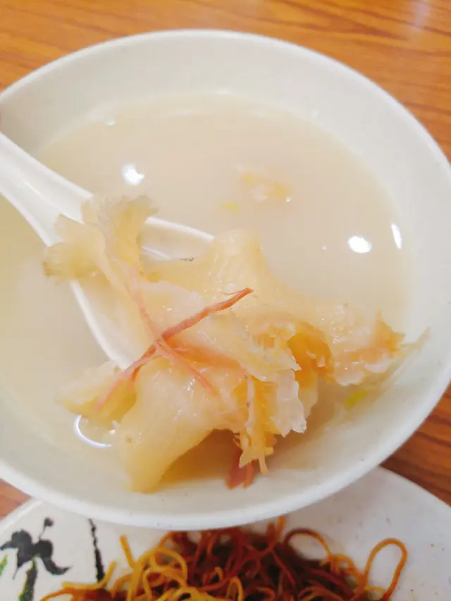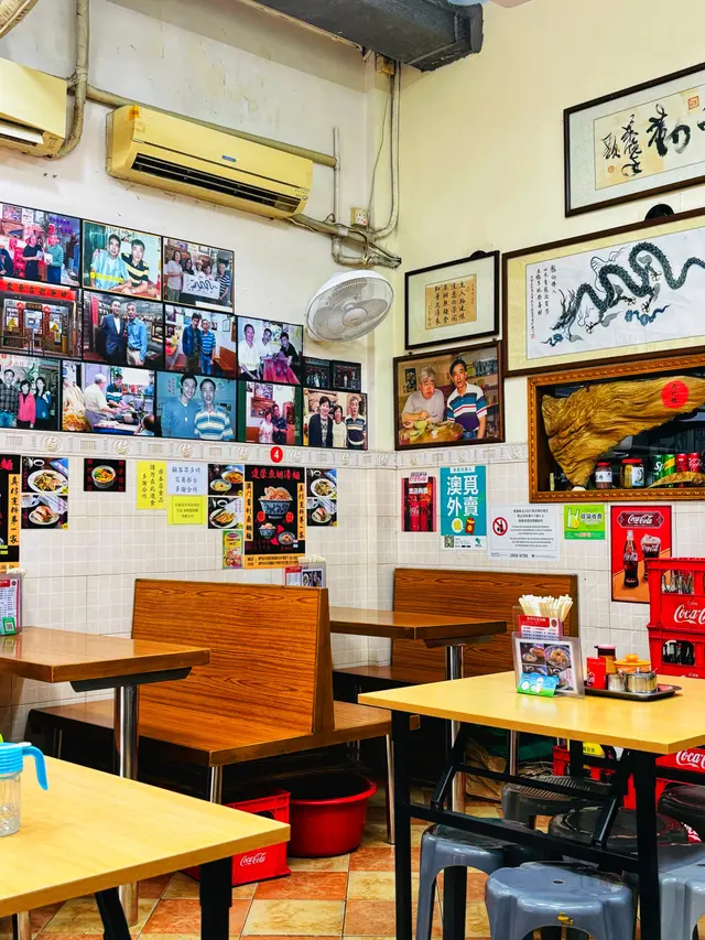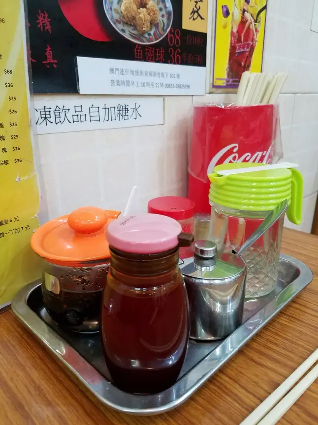 平日都沒有什麼機會會吃魚翅,這天到澳門玩,朋友帶我去了一間食神滔滔都有來過吃魚翅的餐廳。餐廳就在官也街的後面,我們逛完街就過來吃個下午茶,可能時間尚早不用排隊,我們吃得差不多的時候客人就漸漸開始多了。餐廳內裏都是一般平民的茶餐格局,裝潢看得出帶點歷史,牆上貼上了不少明星到餐廳的相片。而服務方面,職員很有禮貌又為我們介紹食物,所有點的食物送到後,職員就會過來結帳。🦈魚翅湯飯$88 🥢必點🥢魚翅彈牙,湯底味道頗鮮味,感覺飯粒都吸收了魚翅湯,熱騰騰吃感覺不錯。🦈魚翅撈麵$106職員介紹我們用他們自家製咖喱辣醬配撈麵吃,醬料微微的辣,不吃辣的都可以吃到唷~而麵質有點像蝦子麵,配起來頗惹味。魚翅是用另一個碗盛載,和魚翅湯飯味道一樣。🦈招牌魚翅球$48 5粒附上酸甜醬,外皮炸到金黃香脆,內裏是鯪魚球的味道,但吃不到有魚翅,可能是份量太少的關係吧!