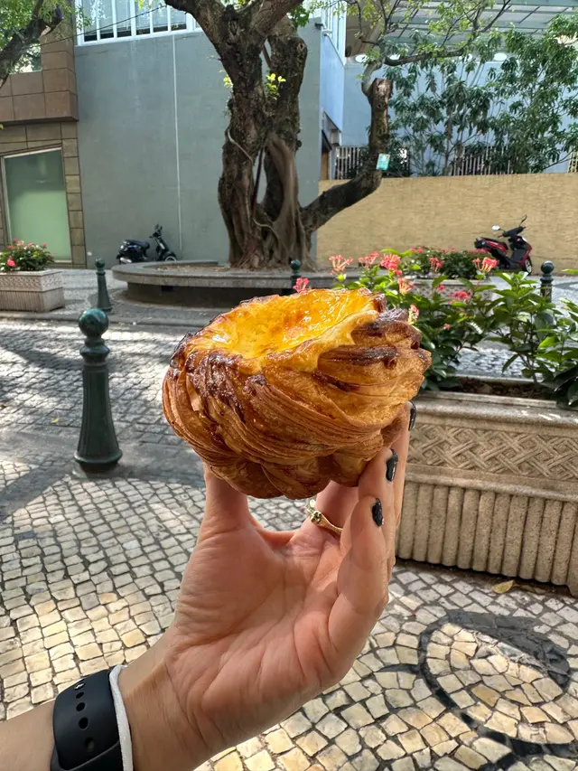 Goat Bakers奶酪花杯子 MOP$38氹仔分店喺天后廟隔離我地朝早十一點半左右去到唔洗排隊即刻買到大概係舊式茶樓無耳茶杯嘅size拎上手頗乾身 咬落有外脆內軟嘅感覺 無油膩感我地現場常溫食 淡淡Cream Cheese味 日式芝士撻醬輕身唔厚實 頗為清新個腦浮起日本嘅bake cheese tart好評👍🏻⛺️ Goat Bakers @goat.bakers📍澳門氹仔舊城區巴波沙總督街80號地下C號舖…查看更多
