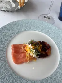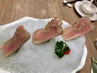 醃生鯛魚片配青瓜及生蠔葉