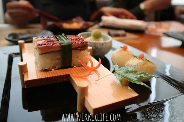 用箱壓、搓成波子的做法製作壽司,在外型上做成立方、球體的形狀。看得到師傅的功架外,也能吃得出火炙左口裙邊和炭燒鰻魚的香口美味。