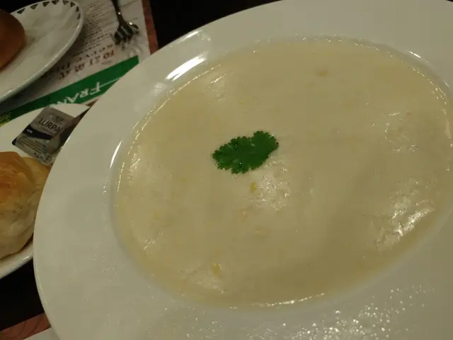 Frangi 燒雞半隻,紅酒逼羊膝一份,忌廉粟米湯一客,老闆娘極力推介咖哩蟹,但今次只係黎發掘吓美食餐廳,唔知會唔會中伏,所以唔敢 order。