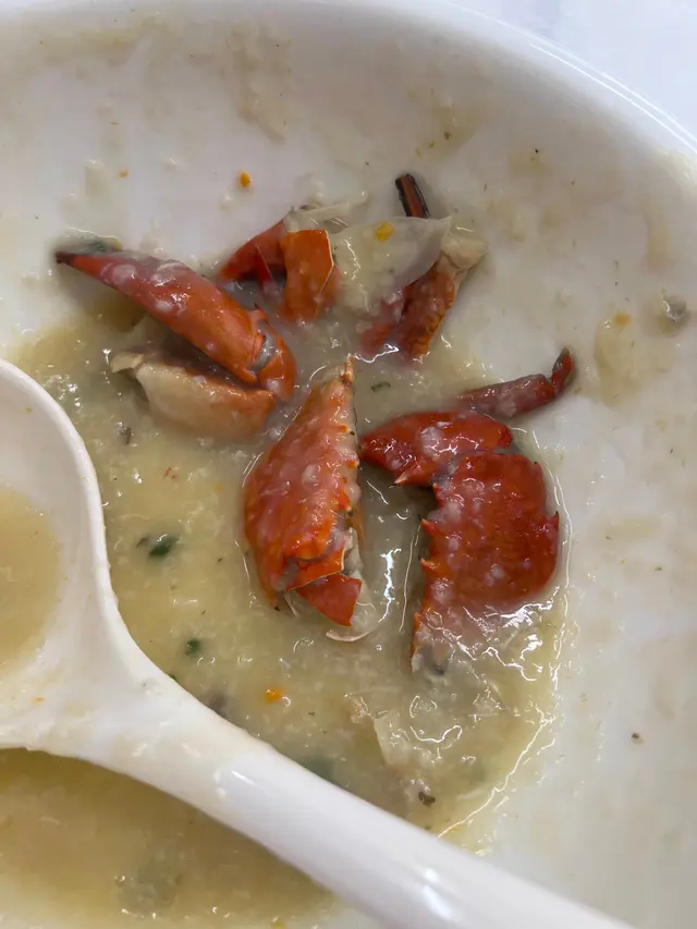 今次叫了大水蟹粥葡幣270, 細$220。 可能冇客人,今次個粥好快就送上。賣相都吸引,但蟹蓋好奇怪變咗型,彎曲同平時蟹蓋唔一樣。粥好甜,蟹好差,啲肉質「梅」架 , 蟹無一隻,好多蟹鉗,蟹身好零碎😫😫😫😫,攪咩呀⋯⋯炸鯪魚球都不用叫🐷