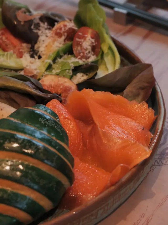 三文魚入口腴香肥美,牛角包酥脆,不錯。
