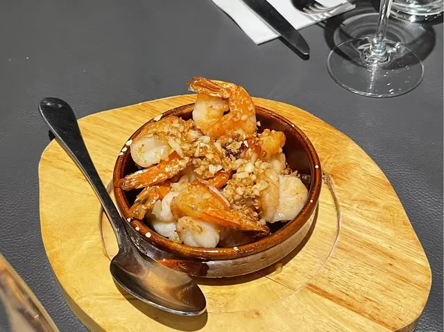 經典Tapas之一🔥 鮮蝦以橄欖油慢火煎香,蒜香濃郁撲鼻,蝦肉彈牙鮮甜。油香混著蒜片微焦嘅香氣,配埋麵包蘸油一流🤤
