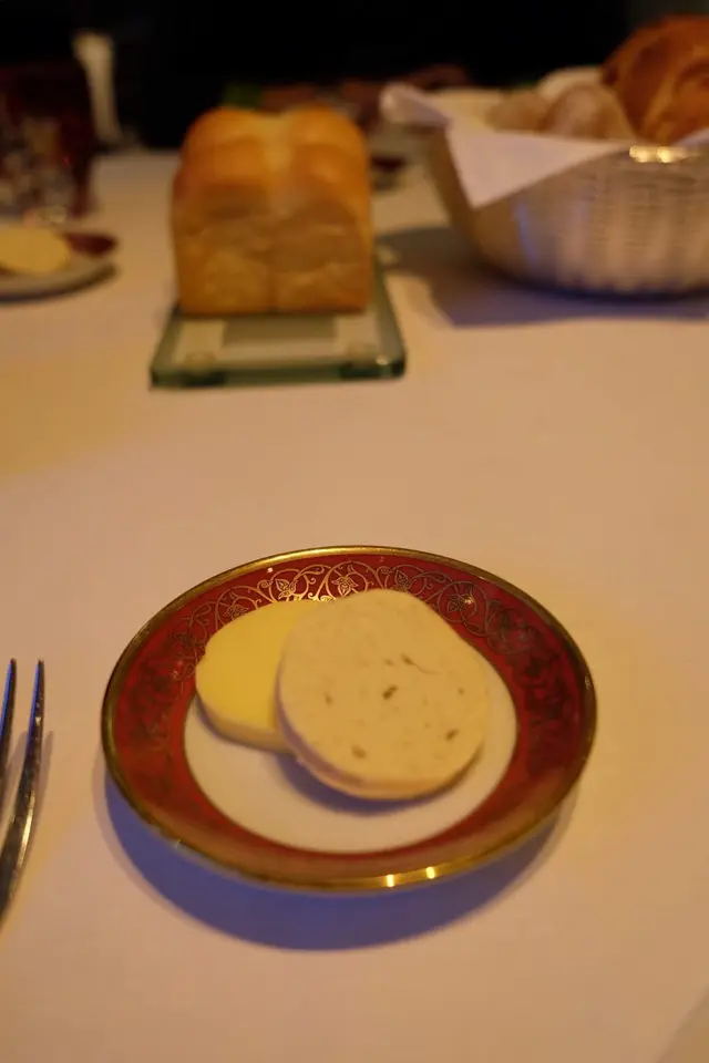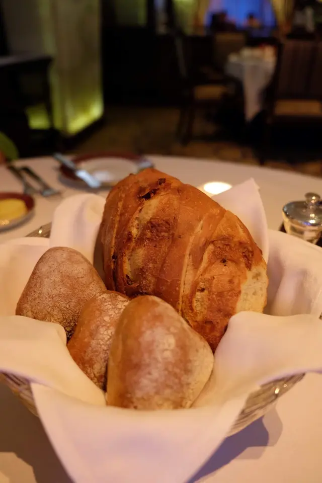 是晚吃的是set dinner ,西餐的business as usual ,麵包行先,肉腸麵包和啤酒麵包各有特色,鬆軟又熱辣辣的麵包簡單得來叫人停不了口,配上自家的香蕉牛油,就算減肥不能吃太多澱粉質的我也忍不住吃了兩件大的麵包。