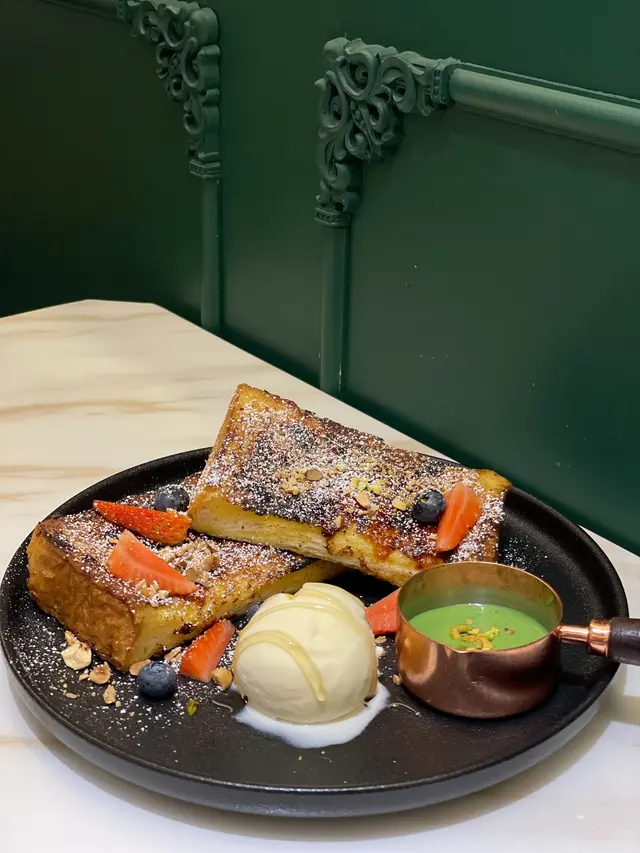 這個布蕾西多士🤩,超級無敵好吃呀! 賣相和味道同樣令人驚艷😍! 西多士充滿香濃的蛋香,口感非常非常軟綿綿,面層的焦糖提升整體層次,真心必試呀~開心果醬不算好濃,濃一點更好😏。