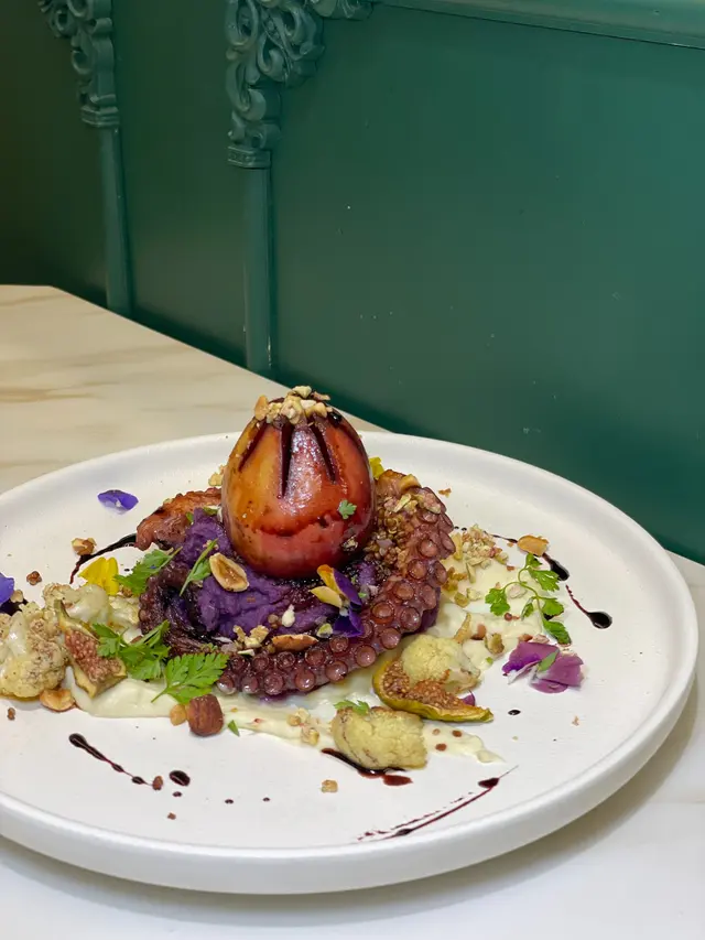 店員推介的八爪魚腳,除了賣相出色,味道也好好呢(≧▽≦)! 頂層是香甜的無花果,八爪魚肉質軟腍又彈牙,用砵煮熬煮,好入味呢~紫薯蓉甘甜綿密🍠,不錯耶~