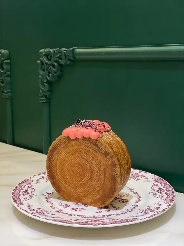 終於吃到這個期待已久的蝸牛牛角包啦😚!!! 酥脆到不得了的牛角包,果然好吃~用刀子一切,清脆聲音令人陶醉😗,更隨即爆出荔枝紅茶內餡🫶🏻!!