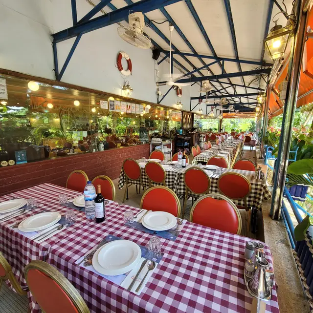 餐廳分室內與半露天兩區,藍白屋頂、格仔桌布、救生圈裝飾,滿滿海邊小酒館感覺。侍應全程以葡英粵三語穿梭,換碟添水手腳俐落,態度親切。