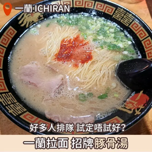 🍜有冇傳聞中咁正?入到去要先係點餐機付款,雖然見到要排隊一小時,但其實店鋪面積幾大,入面有座位for排隊,最後排左40分鐘到就入得去🏠餐廳: 天然豚骨拉麵專門店一蘭 ICHIRAN♟️地址: 尖沙咀棉登徑8號地庫B號舖及地下入口大堂 (銅鑼灣有分店)⭐️味道評分:6/10📍天然豚骨拉麵 $98只係得呢一款豚骨拉麵揀,味道可以自行選擇: 口味濃淡、油濃郁度、蒜泥、蔥、叉燒、秘製辣醬汁、麵條硬度😲一蘭湯底同普通豚骨拉麵冇咩分別,係蒜味重d,麵條粗幼同蕎麥麵類近,而且比較直身,我揀左2倍辣醬都唔算好辣🌶,個人覺得要加辣醬先調到個味出嚟,一個麵既份量好少😂食完唔夠飽,叉燒只有兩小片,味道正常以呢個價錢嚟講,味道唔算特別標青,如果好奇都可以試下既~…查看更多