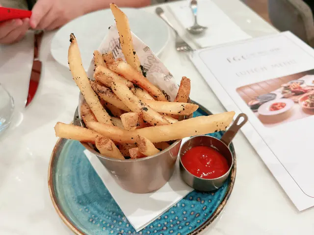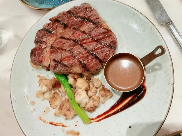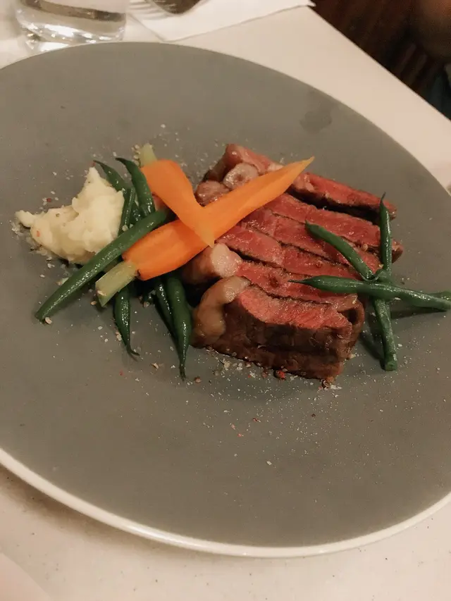 本身諗住同呀仔食lunch…點知變咗出尖沙咀買嘢…lunch 就好順便咁喺附近食埋🫣😂呢間樓上舖嘅餐廳都幾好味😋叫左份8安嘅燒肉眼扒、一份是日精選魚(雪魚),兩個人食😆再加左份黑松露薯條滿足一下自己…新鮮炸起嘅薯條脆卜卜🩵牛扒5成熟好juicy🤤,配上燒汁更好味👍🏻👍🏻雪魚配嘅獨特蛋汁 帶出鮮味,煎得好滑🤩🤩🤩仲有仲有佢哋嘅甜品🍮 好想再食呀😍😍😍真係好好味,如果當時唔係咁飽,我諗應該會叫多份🤣🤣呢餐總括嚟講 性價比高,估唔到無意中發現到間有水準嘅餐廳,而且價錢唔貴,下次可以真係帶埋仔仔嚟食啦😇…查看更多