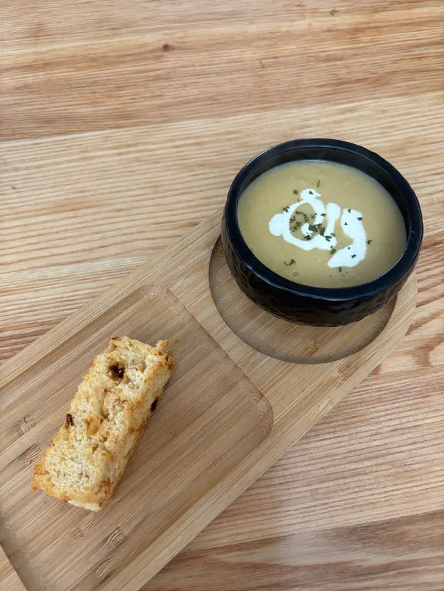 上環嘅樓上cafe,用心小店1️⃣忌廉煙三文魚意大利飯Risotto嘅忌廉味好香濃,濃郁嘅奶香配埋芝士,好邪惡,醬汁剛好,唔會太濕,配上我超中意嘅三文魚.💰HKD$1482️⃣法式燒春雞配烤香草牛油薯仔雞肉好嫩滑,烤得好香,底下有蘿蔔,玉米,蘆筍,薯仔又係烤得好香💰HKD$1683️⃣咖哩飯,係日式甜咖哩,搞到我係咁食因為真係勁香. 撈飯一流💰+HKD$104️⃣粟米忌廉湯配意式香草包粟米打成蓉,仍有顆粒口感,奶香味濃郁.香草麵包非常香脆,點上粟米湯食,另一番風味。真係幾值得支持,食得出廚師係用心煮,價錢合理,份量又多.👍🏻💪🏻😍…ดูเพิ่มเติม