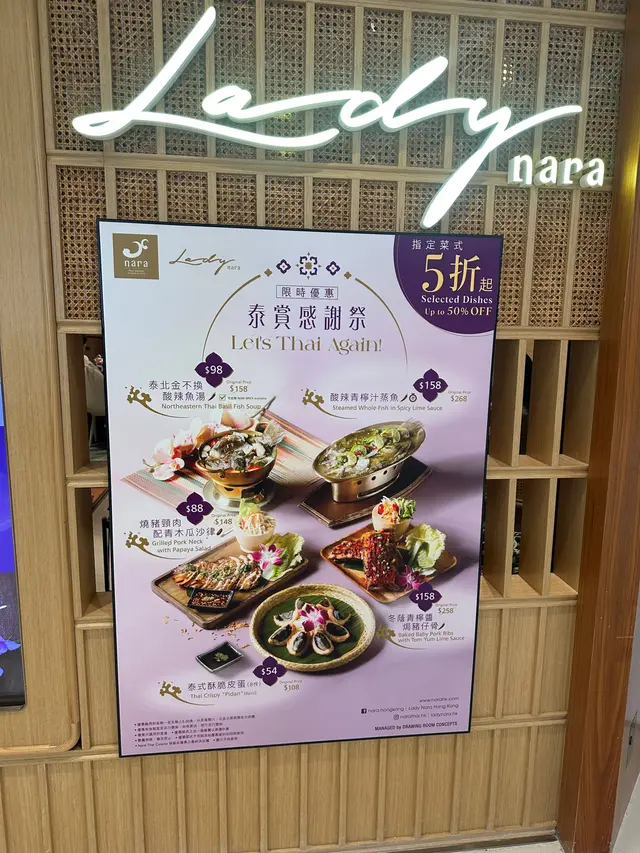 Lady nara係港威商場入面一間泰國菜餐廳,裝修真係好夢幻✨,以粉紅色為主調,仲有藤椅、鞦韆打卡位,窗邊望出去就係維港海景🌊,感覺好chill又浪漫~當晚仲有枱客慶祝生日🎂,氣氛熱鬧又開心!我嗌咗燒豬頸肉配青木瓜沙律,原價$148,啱啱遇上「泰賞感謝祭」限時優惠,只係$88,真係抵食😋!再加杯可樂$28,簡單又滿足。朋友就叫咗泰式炒河粉$118,份量足夠,味道都唔錯👍。🐷Lady nara 嘅燒豬頸肉真係香口又多汁,外層微焦脆脆地,咬落去仲有啲煙韌感,配埋青木瓜沙律嘅酸酸辣辣,啱晒味蕾💥!嗌返杯冰凍可樂一齊食,簡直係完美配搭🥤。而且以$88優惠價食到原價$148嘅菜式,真係食得開心又唔肉赤😄~入座時每枱都會有一碗泰式蝦片🦐,唔係免費嘅,會自動加$15入賬單,雖然脆口好食,但冇講清楚就收費有啲小伏😅。整體嚟講,Lady nara係一間好啱打卡、睇海景、食泰菜嘅地方📸,如果想搵個靚靚環境同朋友聚餐,呢度絕對係唔錯選擇!…Read More