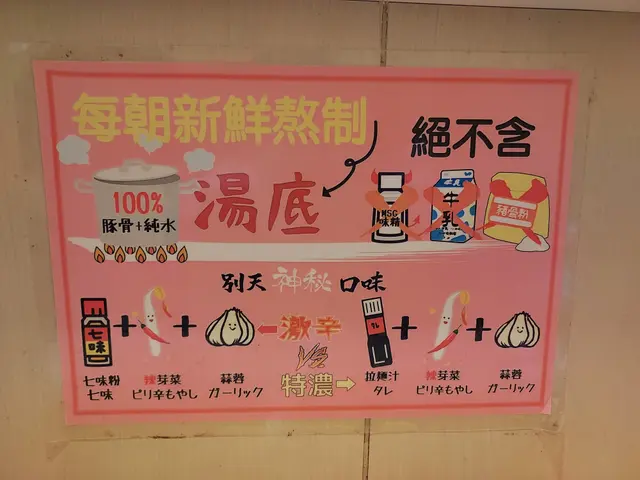 之前,我去了別天神旺角舊店、將軍澳店,今次來到北角店。北角店在港鐵站旁,小店只有六七個位。A,拉麵,只有兩種選擇,湯底是基本的豚骨湯底,另一種是蝦味噌豚骨湯底 。叉燒都可以,不太硬,又有咬感。別天神的叉燒是放在湯麵中,而另一間蝦味噌豚骨拉麵店肉是分碟上的。我喜歡蝦味噌豚骨湯底,特別。B,小食,主要都是兩種,餃子 (6隻),及小龍蝦蟹子沙律,兩項都好吃。套餐是A+B,要注意的是,第一,套餐餃子只有4隻;第二,套餐送蛋 - 味付玉子。如果不喜歡吃蛋,建議單叫拉麵。他們聲稱,湯底不含味精、牛乳及豬骨粉,湯可以飲。麵質可以叫由軟到超硬,分別在煮麵的時間。總評味道:一分錢,一分貨,中高級日本拉麵店;環境:環境很舒服,我喜歡小店;服務:店員有禮貌;衛生:乾淨。博多拉麵別天神北角書局街22號地下…查看更多