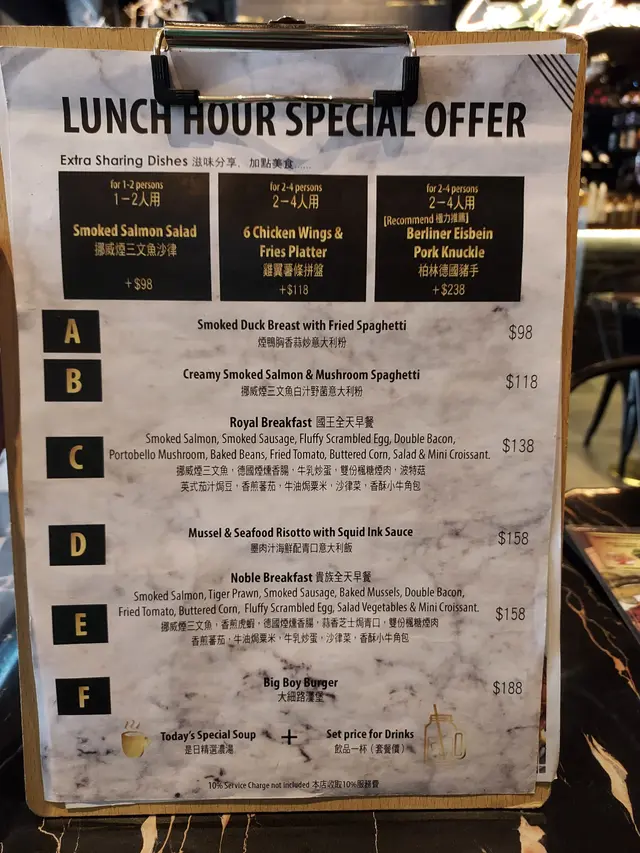 是咁的,我上次去友利冰室 X 勿當奴太子分店,覺得乳豬卡邦尼意粉好好食。所以帶很喜歡吃卡邦尼意粉的女兒去另外一間觀塘分店。星期日,便經過駿業里,唔太塞,無停死。未到偉 業發現日升在駿業街,友利。我們,點解要返觀塘,星期日要返教會,唔會去觀廣。我要行入冰室,逃離人類荒謬,就用我的雙手,指吓餐牌,叉蛋飯、卡邦尼。左右分流,間鋪幾十個人客,站在我的身後,生意好就無愁沒憂。焗豬扒飯、加飲品,就已經,很足夠。(註:我返開教會的。)乳豬卡邦尼意粉,是他們的名菜,出名到我放上圖在面書,幾分鐘內有幾十個留言認得來自友利冰室。卡邦尼意粉熱焫焫,好有誠意。乳豬,脆皮,有網民說只有三舊乳豬太少,我反而覺得份量剛剛好,再多乳豬會太肥太膩。喜歡吃卡邦尼意粉的女兒也給予高度評價。叉燒炒蛋飯,好足料,好大舊叉燒,叉燒唔硬。如果可以減少醬汁份量,更好。勿當奴包,名字好攪笑,又幾好食。豬柳包叫豬柳強 Strong Pig,魚柳包 英文名是 Fish & Cheap。勿當奴包餐,包薯條和汽水。我們點了火辣辣雞腿包,好辣,好味。鮮茄焗厚切豬扒飯,即叫即焗,所以要等十幾分鐘,可以接受。豬扒勁多也厚切,豬扒份量多到吃不完。菠蘿好像不是罐頭菠蘿,鮮茄和芝士很香口。總評味道:好好味;環境:整齊;服務:店員有禮貌;衛生:也好。…查看更多
