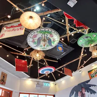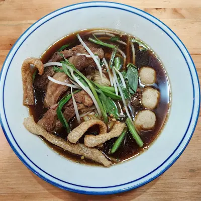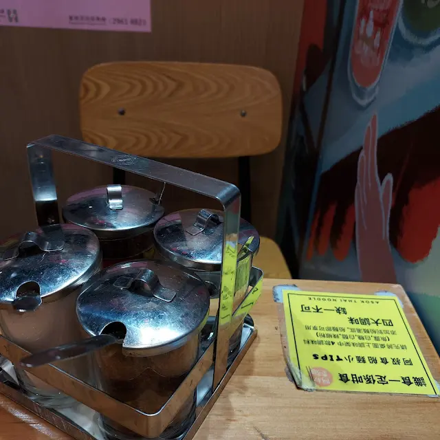 來到阿叔泰麵,一試其主菜 - 牛肉船麵。$60,有牛腩、有牛丸、炸豬皮、芽菜、通菜、及花生碎。初時,牛骨湯,麵可以。然後發現餐廳提示,原來要加桌面的四款調味料:魚露、白糖、白醋、辣椒粉,我加了前三項,牛骨湯的味道幾何級數提升,好味喎。牛腩,都幾腍。牛丸,不太似香港牛丸,細細粒。麵,我選了金邊粉,很特別,幾彈牙,份量不是太多,我反而喜歡。小店,座位20個以內,裝修內外都有點心思。總評味道:記得要加四款調味料:魚露、白糖、白醋、辣椒粉;環境:小店裝修內外都有點心思。;服務:上菜速度都幾快;衛生:可以;…查看更多