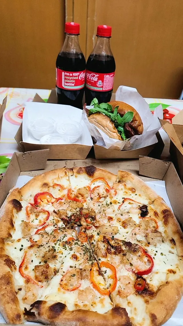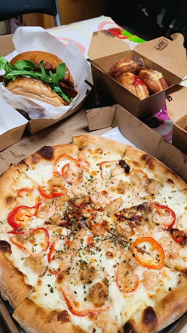 漁夫芝士手工薄餅🍕🧀 $135元朗開了一間新的pizza外賣店😛終於不用只是吃Canadian Pizza了,可以試一下新餐廳😆pizza真是手工的,即叫即刻看着他整😌 看着他放了滿滿的芝士🧀大滿足,海鮮份量都ok,最喜歡彈牙的蝦🦐Pizza 份量都大,夠2-3人吃~~ 煙肉芝士和牛漢堡🥓🍔 $85強烈建議即食!!🙈 一個店員整Pizza🍕,另一個店員整漢堡🍔,他兩邊包都會幫你煎一下,煙肉也煎得脆脆的🥓中間和牛肉餅超厚超大,整個漢堡份量應該是Big Mac差不多🤣而且這個餐還包括了薯條🍟和各式醬汁,最正的是有黑松露醬🤩 即製Doughnuts 🤩 $135/6看到有Doughnuts,當然要叫‼️Doughnuts 有6款口味:檸檬蛋黃醬🍋,草莓🍓,朱古力🍫,雜莓,白朱古力🍫,芒果🥭小妹最推薦檸檬蛋黃醬味🍋味道最特別,酸酸甜甜而且很清新的味道👍其次是朱古力味🍫如果喜歡吃金莎/Nutella的話就會很喜歡,完全就是那個味道,超甜的~~ 黑松露脆蝦🍤 $52炸蝦🍤有大概7,8隻,炸得很脆,配搭很香的黑松露醬,是很不錯的小食😌 可口可樂🥤 $17很少見它不是給罐裝,而是支裝的可樂🥤 總結:位置近元朗‘臭渠’那邊,豐年站走過去大概7,8分鐘,強烈建議食物要即吃,不要放太久🤣~~…查看更多