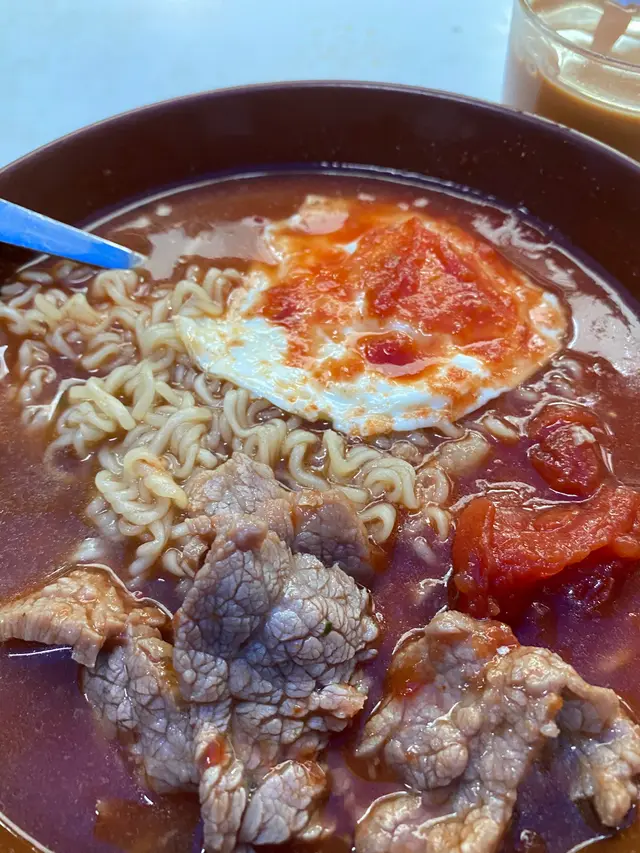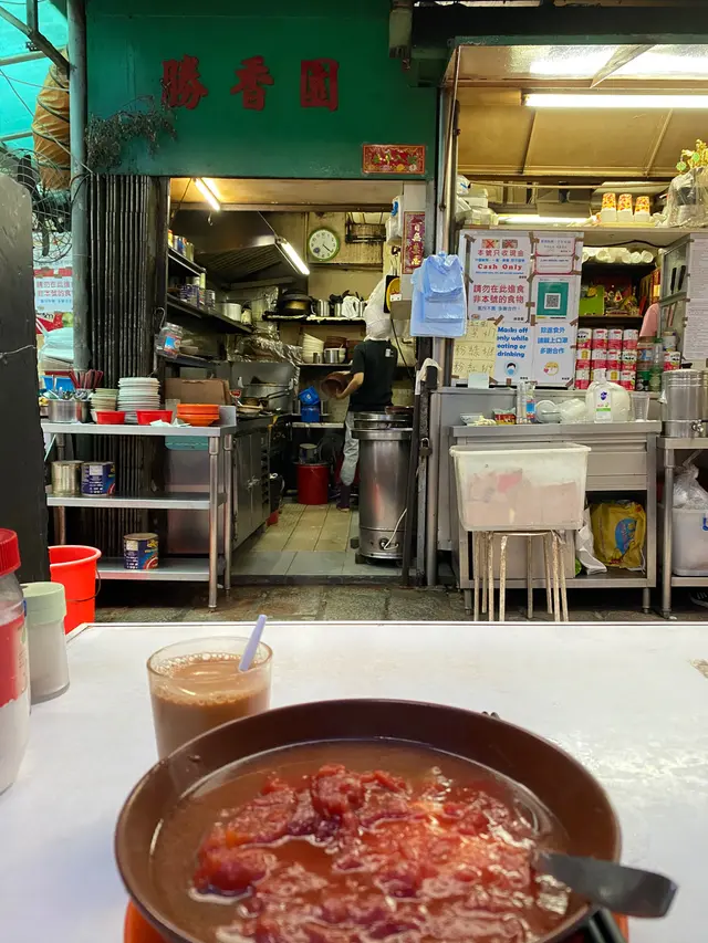 好少過海㗎,一場嚟到中環........就咁......就諗起好似附近有個檔口仔有蕃茄湯底嘅麵食。即刻OpenRice 下,search到啦——係勝香園啦!中環老字號,街邊檔(唔算大排檔啩)。幾年前嚟過一次朝聖係要排長龍㗎吓......今次係一到即入坐仲有位比我揀添喎,盛況不再係因為疫情,還是其他原因,我唔清楚。茄牛蛋麵好快上枱,目測已經肯定個蕃茄湯底濃過我樓下茶餐廳同連鎖快餐店,麵面再嚟一團蕃茄碎醬仲發現一粒只係椿爛咗一半嘅車厘茄,即刻覺得又幾Fresh喎⋯⋯入口湯底偏酸我仲要咁喎,牛肉夠稔,蛋半生熟,我好滿意呀。再嚟杯熱奶茶,有茶味喎,啱我口味。埋單$49,合理呀。…查看更多