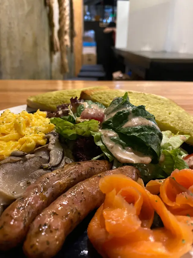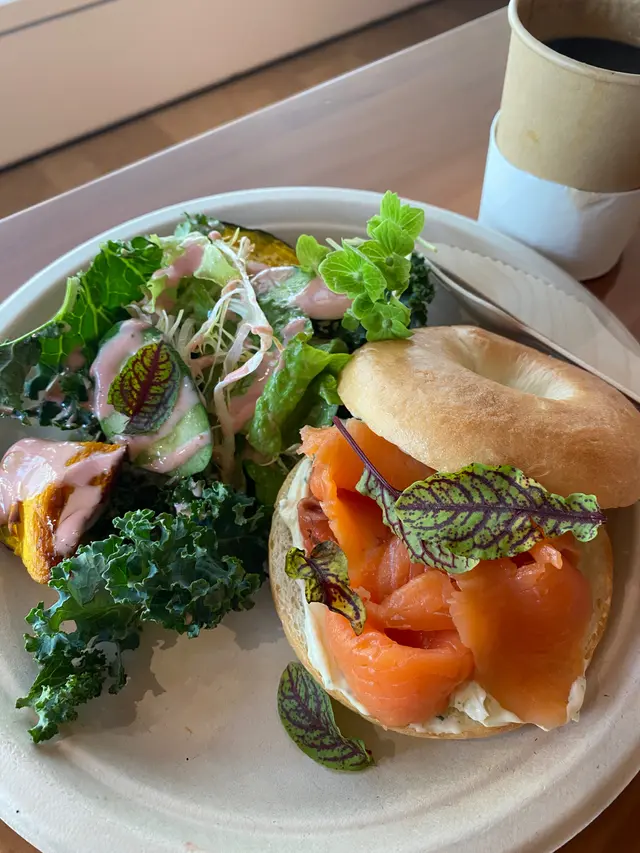 試業中的cafe點了三文魚begal n long black。兩片三文魚份量合理,begal上面嘅cream cheese 淡味,沙律菜讚好新鮮,羽衣甘藍嫩南瓜片香,另外那兩三片紫色葉脈同梗嘅小葉子我唔清楚吓叫咩名。Long Black$41三文魚begal$58…查看更多