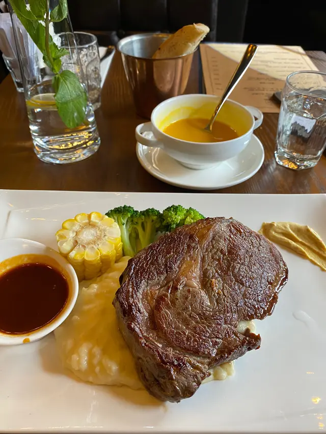 舊區一小店,但未有緊縮坐位空間,仍能與隔離枱留住點點安然間距。今次其實是第二回幫襯,那當然是第一回給了我點點驚喜所以才回頭再訪。點了跟上次一樣的午餐set紐西蘭肉眼扒,先上枱的甘筍湯混有點薑蓉,回味,讚👍🏼肉眼扒雖5成熟,入口稍稍亁,應該是欠了點油份,肉質瘦了點。那我上一次(2個月前)吃的質素比今次好多了,似乎質素稍稍不平穩,但$148的set lunch我仍然覺得是合理的。叧外一讚的是店員都溫文有禮甚是親切,還有那支加了薄荷葉和檸檬的水,淸新有心思。我還是會再回頭的,期待下回…查看更多