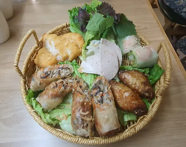 大圍除了圍坊,在地鐵鄰近還有好多地舖食店,今天去了這間河內越式料理,好在早少少食,走時見到大排長龍,果然是熱門餐廳。點了幾個熱門菜式~河內小食拼盤 $135,大包圍幾款重點小食:炸手打蝦餅,越式春卷,香茅雞翼,扎肉,鮮蝦米紙卷,幾款都唔錯,手打炸蝦餅都幾彈牙,外脆內彈;香茅雞翼,有肉汁煮得啱啱好,好嫩滑;值得推介越式春卷新鮮香脆,加越式酸辣汁用生菜包住食,超好味。另外點了一個越式牛柳粒紅飯 $120,(另加$21 可加一碟油菜),見menu介紹好吸睛,紅飯都幾特別,點一個試試,紅飯是蕃茄飯,酸酸地都幾開胃,另洋蔥三色椒牛柳粒炒得幾香,牛柳粒肉質夠軟身(帶點中式風味),整體都唔錯。點了一個特飲,鮮芒果西米露 $30 (跟餐只+$12),好香椰汁味,正!…查看更多