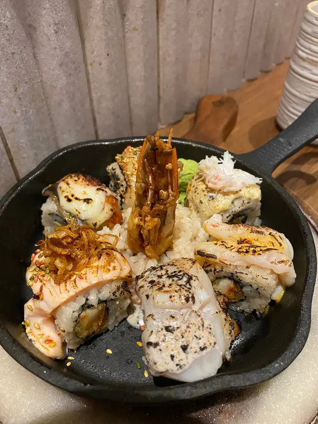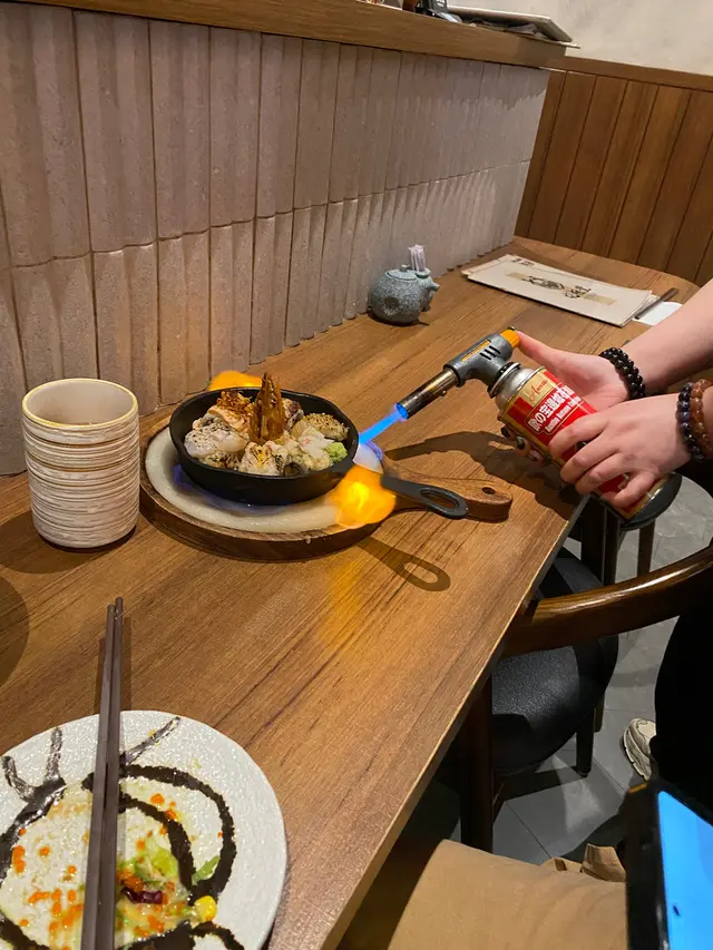 呢間同家人朋友幫襯過幾次,之前去銅鑼灣店都好滿意,今日就帶未試過既朋友嚟炮台山店食飯~仲記得之前同大班朋友嚟食,仲有間房可以坐,好方便傾計!今次就坐吧枱,一樣係咁舒服好坐~[溫泉蛋蟹肉沙律]賣相好靚,我本身唔食蕃茄仔,但試咗一粒勁新鮮爽脆,撈埋個芝麻汁同埋溫泉蛋黃,味道好balance~[究極火龍卷]名符其實既一道菜,竟然真係識著火,賣相滿分!入面有6件手卷,6件個topping都唔同款,一碟就可以食勻晒,中間仲有個炸到好酥脆既蝦頭,好有趣![鰻魚芝士玉子燒]玉子好嫩滑,加埋入面鰻魚肉,熱辣辣,居酒屋必食![海膽右口魚邊蝦卷]賣相精緻,一啖就有齊豐富海產味道[究極炎之丼]熱辣辣既一碗丼飯,刺新好肥美,火炙過後好香口,正!飲品方面,我地點咗[巨峰提子蘇打]同埋[青檸蘇打],真係有幾粒青檸可以篤,唔會好假好甜,解膩啱啱好~朋友都覺得我冇介紹錯,呢度可以食到有別於一般日本餐廳既創作料理,又靚又好食!佢地平日仲有豐儉由人既lunch menu,就算一個人嚟都可以盡興~!…查看更多