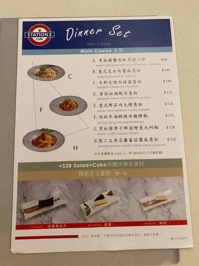 臨時約朋友出嚟傾野,上網想搵間cafe方便吹水,見呢間cafe既dinner set價位都唔錯,就急急訂位夜晚去食,好在有訂位,去到發現full house,可見食物應該會有一定水準!我地叫咗兩個套餐,兩個都+$38有埋沙律同芝士蛋糕。沙律菜好新鮮爽脆,份量都好足,食完冇幾耐就上主菜喇~「香蒜白酒蜆肉意粉」個意粉彈牙有咬口,唔會過淋。微辣惹味,蒜蓉味又夠。而且D蜆肉好似唔使錢咁勁足料~而「西班牙海鮮辣肉腸燴飯」每粒飯都上晒色,口感剛好唔會太硬~海蝦爽口彈牙,飯係有咬口嗰種,加埋豐富醬汁,每粒飯都俾微甜既惹味醬汁包裹住,啱哂鐘意汁撈飯人士!另外仲叫咗個黑松露薯條,勁大份!灑滿晒黑松露粉!因為好大份,所以食完主菜都未食完個薯條,但到最後食個薯條都仍然係好脆口,真心推介!真係好啱約人吹水果時,叫杯飲品,叫份薯條~我叫咗杯「女皇」特飲(跟餐+$10),面頭玫瑰好靚,飲落唔會太甜;而朋友就叫咗 凍薄荷朱古力,好夠薄荷味,同朱古力味比例剛剛好,唔會太甜,夠清新。兩杯都好好飲!飯後甜品我地都叫咗藍莓芝士蛋糕作為一餐完美既句號🤤,個擺盤都有心機,整得幾靚。幼滑口感加上清甜藍莓醬,好滿足呀!估唔到臨時約嘅一間餐廳都咁驚喜,我同朋友都覺得好運連連🥰…查看更多