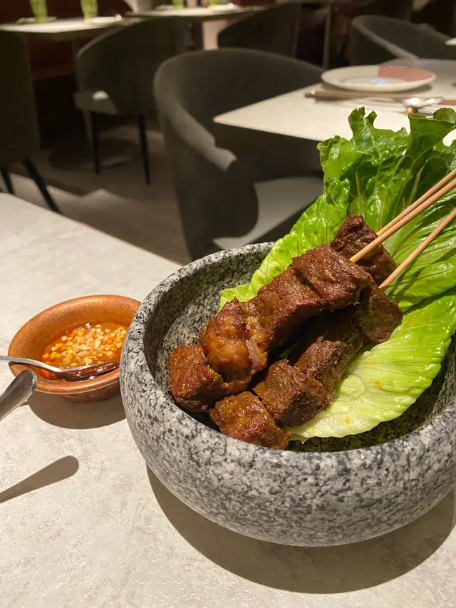 約舊同事食飯,佢話上次去尖沙咀Mira Place見到有間好靚裝修既新派泰國菜,真係一個驚喜嘅體驗!餐廳裝修由門口開始已經好有格調,高雅得來又有啲泰國風情,燈光柔和,坐低即刻有種chill嘅感覺,超適合同朋友或者另一半嚟食飯飲酒!一入座,waiter好有禮貌送上menu,選擇多到有啲眼花!為咗試多幾款食物,我哋叫咗幾款小食,有泰式蝦多士、紅磚豆腐、炭燒豬頸肉同埋酸辣無骨鳳爪,另外再叫多個炭燒沙嗲牛,開開胃先!先講酸辣無骨鳳爪個醬汁入晒味,食落有爽口嘅口感,酸辣度啱啱好,食完就開晒胃喇!泰式蝦多士隻蝦炸到金黃香脆,點啲甜酸醬,酸酸甜甜好開胃。紅磚豆腐炸得外脆內軟,口感同味道層次好豐富,熱辣辣又香口!炭燒豬頸肉同炭燒沙嗲牛都係炭燒嘅精髓,豬頸肉薄薄一片,肥瘦均勻;沙嗲牛肉串就更正,平時食串燒好驚燒到乾晒,呢度個串燒牛肉大粒得嚟又好嫩滑,啖啖肉好滿足!之後仲叫咗泰式椰子鮮雞湯,大推!估唔到個湯勁好飲,椰汁香濃但唔膩,雞肉好嫩,香甜清新,份量又足,我同朋友一人飲咗三碗飲晒佢!酒香火焰骨係全晚嘅高潮,侍應幫手淋酒,再加火焰一燒,畫面勁靚!最估唔到係份量勁大碟,排骨入晒味,肉質軟腍到軟骨都可以食埋,食到停唔到!食完個排骨,再嚟多個泰胡椒和牛炒糯米河,又係一個大驚喜!河粉炒到好彈牙,和牛又勁嫩滑,而且一啲都唔油,唔會好似中式炒河咁食到個人好大罪惡感~甜品嘅黑糖椰子雪糕為晚餐劃上完美嘅句號,椰子乾加埋一球大大既雪糕,仲有好多配料,無論口感定係味道都好平衡!全晚係座無虛席,所以大家如果想試,記得要訂位呀!呢間新派泰國菜真係將傳統泰菜同創意融合得好好,每道菜都有驚喜,服務又貼心,環境一流,勁高質!無論係同朋友聚會定係約會都啱晒!…查看更多