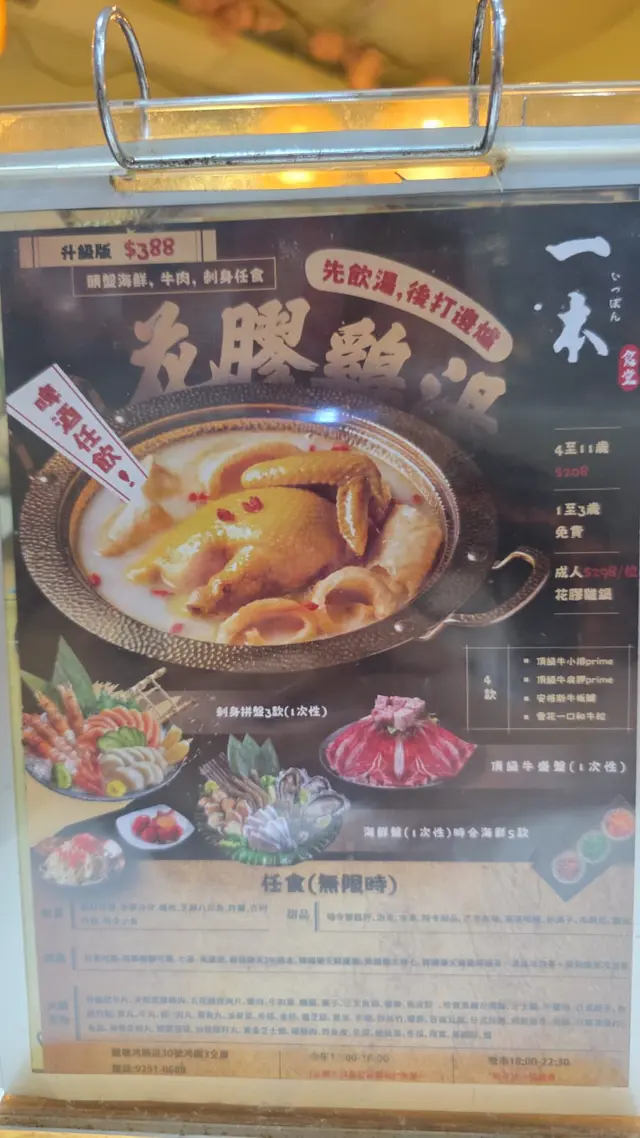 朋友返香港,梗係要搵間吹水舒服嘅餐廳坐啦!朋友好鍾意食嘢,所以無限時放題係我哋嘅唯一選擇!呢間餐廳外表好搶眼,相信喺呢頭嘅街坊都會認識~上到去職員就好友善咁介紹呢一個花膠雞套餐有啲乜嘢食。首先一嚟就係上咗個花膠雞湯,職員喺我哋面前將雞肉放落個鍋度,仲叫我哋記得飲咗湯先開始打邊爐~個湯好清,唔會話因為有雞所以變到好油,飲完碗湯打咗個底就開始食嘢!刺身拼盤有帶子三文魚同埋好大隻蝦,啖啖肉夠晒甜!海鮮拼盤勁豪華,兩隻蠔就算煮熟咗都唔會縮水,肉質好鮮甜;鮑魚又係唔會好韌好老,肉質軟腍腍~啲蝦鮮甜又爽口,正!肉拼盤擺得好靚,係一個驚喜~而炸蝦丸新鮮即香脆可口,同類食品喺中菜廳食好貴㗎!大推!食完以上食物,我哋仲可以出去自助區任拎,竟然連海鮮都可以任食,仲有蔬菜丸類同其他配料揀!最開心係仲有個熟食區,有前菜、沙律,又有好多炸物選擇,仲有烤香腸同埋關東煮!飲品除咗汽水之外,又有啤酒同特製飲品揀。甜品就有好多種味道嘅香港製造雪糕,同埋幾款甜品~最後我同朋友吹水吹到10點幾都唔肯走,朋友話啲枱空間比較闊,啱晒聚會吹水,飲下食吓咁樣過一晚!…查看更多