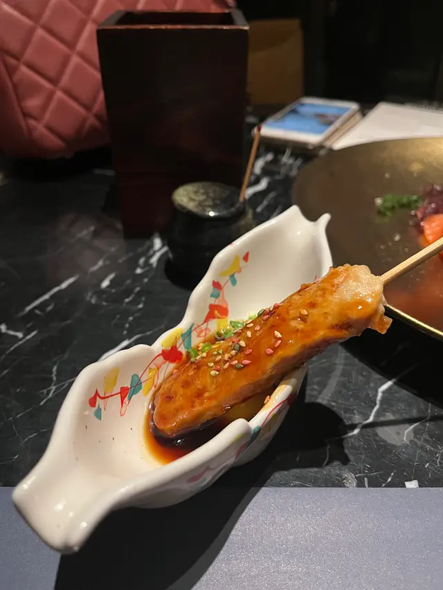 小妹今天同兩個好朋友試下中環呢間日式餐廳,佢地lunch 是類似semi buffet 形式,一個main dish and seasonal sashimi platter 再可以無限refill 一個長list 嘅串燒及壽司。Starting plate 是Seasonal sushi platter,有三款跟著我地叫左scallop, minced chicken skewer, 燒菠蘿,炸雞等,質素都好好,個人比較喜歡熟食多過魚生。之後就是main 餐廳侍應逐個dish.都會講解,好有heart 總括來說,venue + 食物都係中準之作,想食高質日餐值得一試!…查看更多
