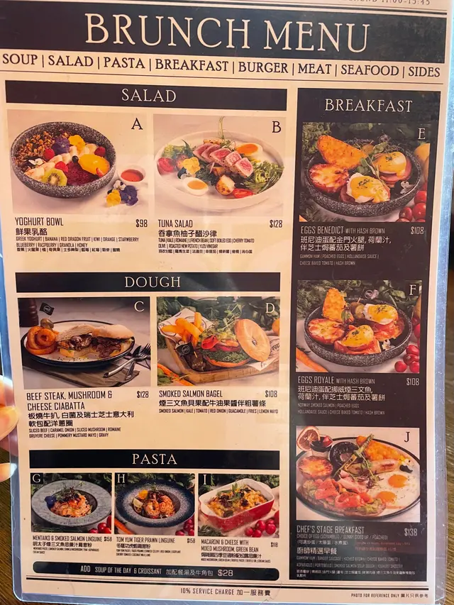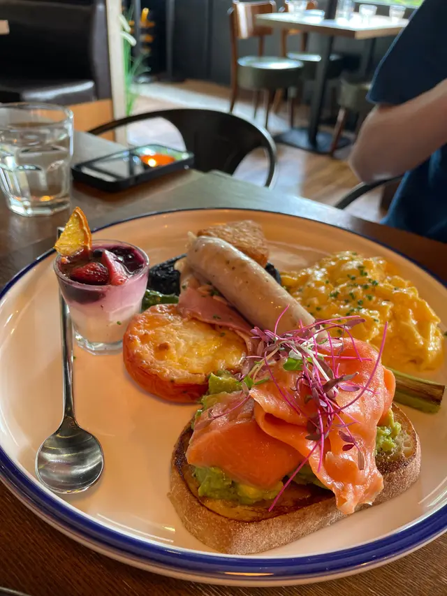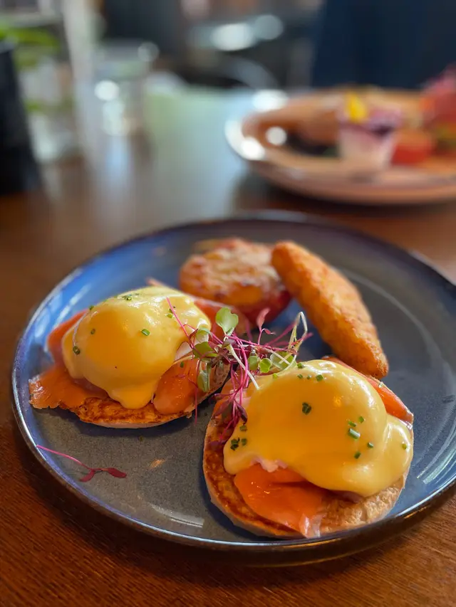 星期六中午食brunch,叫咁廚師精選早餐,即係all day breakfast $138, 好豐富,有煙三文魚牛油果酸種麵包,呢個配搭已經覺得好豐富,仲有大啡菇、炒蛋、腸、蘆筍、薯餅、火腿,仲要加一杯仔雜莓乳酪,真係超級豐富,味道都好好👍🏻另外煙三文魚Egg Benedict,伴芝士蕃茄、薯餅,哩個有一隻蛋黃流心好正,可惜有一隻蛋黃係冇流心。另外餐飲係熱咖啡☕️其實之前食過好多次,但而家all day Breakfast 只剩一款選擇,冇得揀一個輕量的all day ,而家哩個一個女仔食唔晒🥹…查看更多