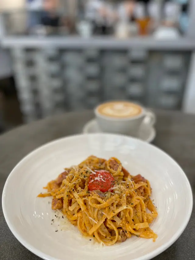 Bookmark 咗一段時間,咁啱去到銅鑼灣即管去試一試。12:20去到排隊,前面已有7個人排緊隊,由於餐廳內只有十多個位,所以都等了半個鐘,今日天氣非常炎熱🥵,但入到餐廳冷氣好弱😥~Carbonara$108,感覺是正宗版嘅卡邦,醬汁只用蛋黃+芝士,而不是用cream 煮的那款,所以質地會較杰身,蛋黃亦用了日本蛋的赤色蛋黃,非常濃郁,煙肉亦煎得非常香口,size 亦偏大粒,cafe 質素來說是很不錯。👍🏻~Earl grey bagel$55(配cream cheese,類似水蜜桃果醬),整體來講普通,勝在烘返熱,都唔錯~Matcha Cheesecake $55,我諗哩款蛋糕也是餐廳的大熱甜品,抹茶味道不太濃,不會帶甘苦味,質地偏挺身,分明地品嘗到芝士同抹茶嘅味道,不錯,但如果可以軟滑一點就更好。~Cold Brew(Nutty)$54 平時較少飲,但覺得味道而入口👍🏻~Hot Latte (Fruity)咖啡豆味香濃,好飲,可惜飲了1/3 拉花已冇左了,不能保存到尾,但係好飲的👍🏻…查看更多