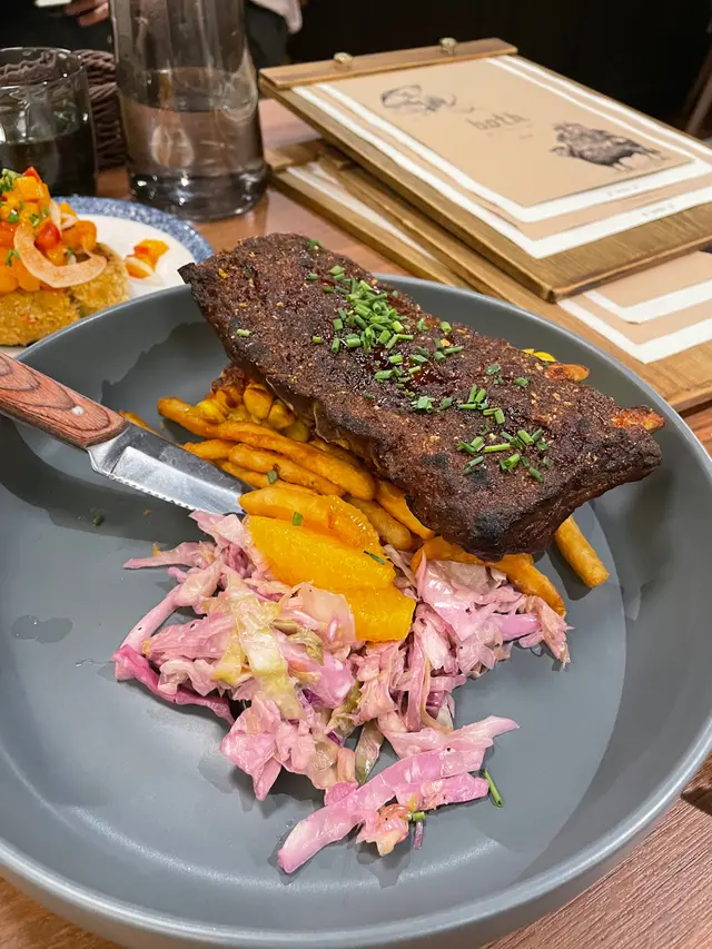 一行7人去晚餐,地點方便,環境幾舒適闊落,食物算精緻,飲品一般,提提大家甜品由order 起計說要等25-30分鐘,但我哋等了40-45分左先上,所以如果要叫pancake, 食飯途中要order 定了。特別要提***慢煮煙薰豬仔骨,哩個好有驚喜,肉質好嫩滑,骨肉分離,煙薰味道特出,讚👍🏻漢堡包🍔味道合格。蟹餅賣相好靚。黑松露薯條好香脆👍🏻。大蝦冬陰功意粉好特別,好好味,但份量略細。玉米夾餅餡料好豐富,有酸忌廉中和了好漏嘅感覺,薄餅係淋的。南瓜湯好勁薑味。香茅白酒燴蜆,很有泰式風味。飲品~early grey chocolate 質感好粗鞋,飲落去會成日粒粒粉咁,個人不喜歡。另外Tiramisu latte反而好有驚喜,好好飲,打卡又靚,推介👍🏻最後pancake係好鬆軟,係好味,記得要早少少order , 避免等到咩mood都冇晒😂…查看更多