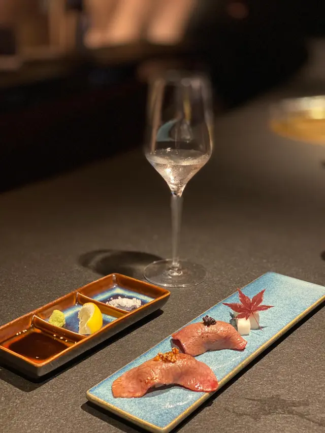 好耐無食燒肉喇,食燒肉我比較喜歡日式,今次同識咗多年好友飯聚再幫佢慶祝入四生日飯,知道呢間餐廳除咗有寫黑板生日甜品併盤外,原來門口位仲有大電視播放生日快樂及名字幕㗎,朋友好驚喜又喺到傻笑,大家都好開心$980/位「櫻」套餐,,呢個餐會有有18道菜,當中燒肉部分全程由店員代勞,而且非常熟手,每款肉都燒到恰到好處先上前菜及沙律:酸咪咪和風沙律,另三併蕃茄仔、淮山及紅酒橋頭,仲有和牛他他磯煮鮑魚相當入味,上面仲有金箔㗎,食落好濃鮮又爽口到主角陸續出場了,先來A5宮崎櫻花牛三品,入面有前腿肉、三角腩、內後腿肉,中間會有店員講解牛每個部位每款油花紋理都好出色,最愛三角腩牛脂滿滿相當濃郁唔好比佢停,之後到A5宮崎櫻花牛三品肩口肉,另有2款係廚師發辦稀有部位品肩里肌及和尚頭肉質越食越粉嫩,真係入口即溶,我跟朋友都大讚好味牛柳三文治同樣用上A5宮崎櫻花牛,店員即場燒完再放上脆多士到,加點蛋黃醬一齊食,呢款真好食估唔到呢個餐除咗燒肉,仲有我都好鍾意嘅天婦羅,係用咗軟殼龍蝦去炸,脆又鮮味,配清酒一流,另即跟上鮮甜大蜆清湯到最癲嘅A5西冷出場了,店員邊燒見到啲牛脂燒出嚟已經流口水,再加埋海膽及魚子醬升級哂當跟朋友都飽時原來仲有白飯魚天婦羅冷蕎麥麵,所以男士們食呢個餐都夠飽最後食埋打卡寫字甜品相當滿足,朋友今日都好滿意又開心,我就放心哂…查看更多
